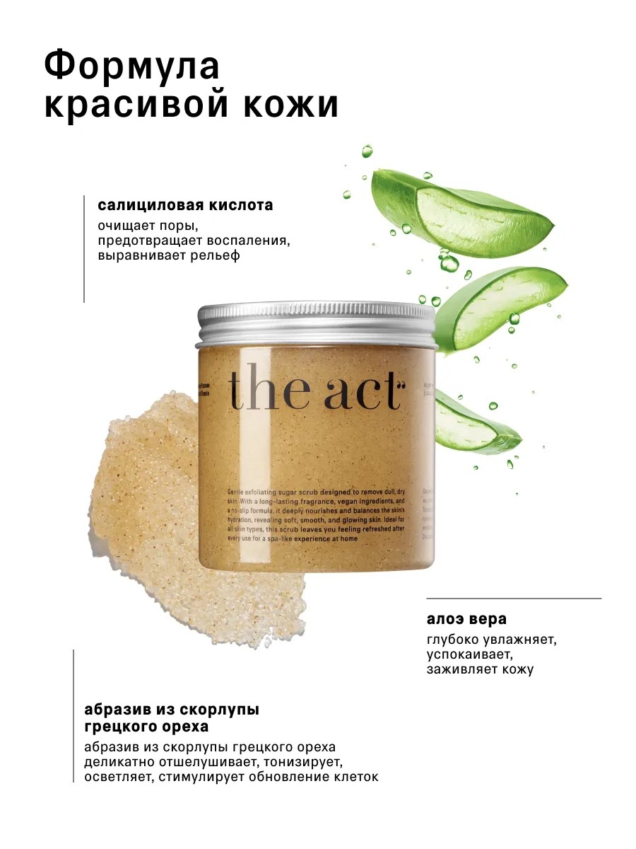 Сахар, Масло Сафлора, Полисорбат 20, Диоксид Кремния, Масло Ши, Абразив Скорлупы Грецкого Ореха, Токоферилацетат, Масло Зеленого Кофе, Салициловая Кислота, Полиакрилат Натрия, Сок Алоэ, Масло Миндаль , Масло Макадамии, Масло Какао, Отдушка.