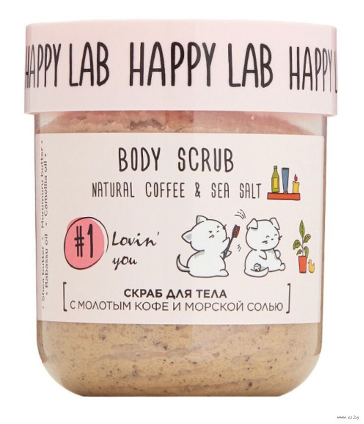 Натуральный молотый кофе и морская соль в составе скраба HAPPY LAB бережно отшелушивают омертвевшие клетки. Кожа становится гладкой и мягкой.