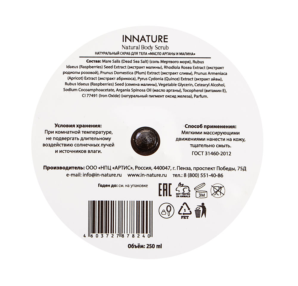 Mare Salis (Dead Sea Salt) (соль Мертвого моря), Rubus Idaeus (Raspberries) Seed Extract (экстракт малины), Rhodiola Rosea Extract (экстракт родиолы розовой), Prunus Domestica (Plum) Extract (экстракт сливы), Prunus Armeniaca (Apricot) Extract (экстракт абрикоса), Pyrus Cydonia (Quince) Extract (эктракт айвы), Rubus Idaeus (Raspberries) Seed (семена малины), Vegetable Glycerin, Сetearyl Alcohol, Sodium Cocoamphoacetate, Argania Spinosa Oil (масло арганы), Tocopherol (витамин Е), CI 77491 (Iron Oxide) (натуральный пигмент оксид железа), Parfum.Мы используем файлы cookie для обеспечения удобства работы с сайтом и его контакта с пользователем.