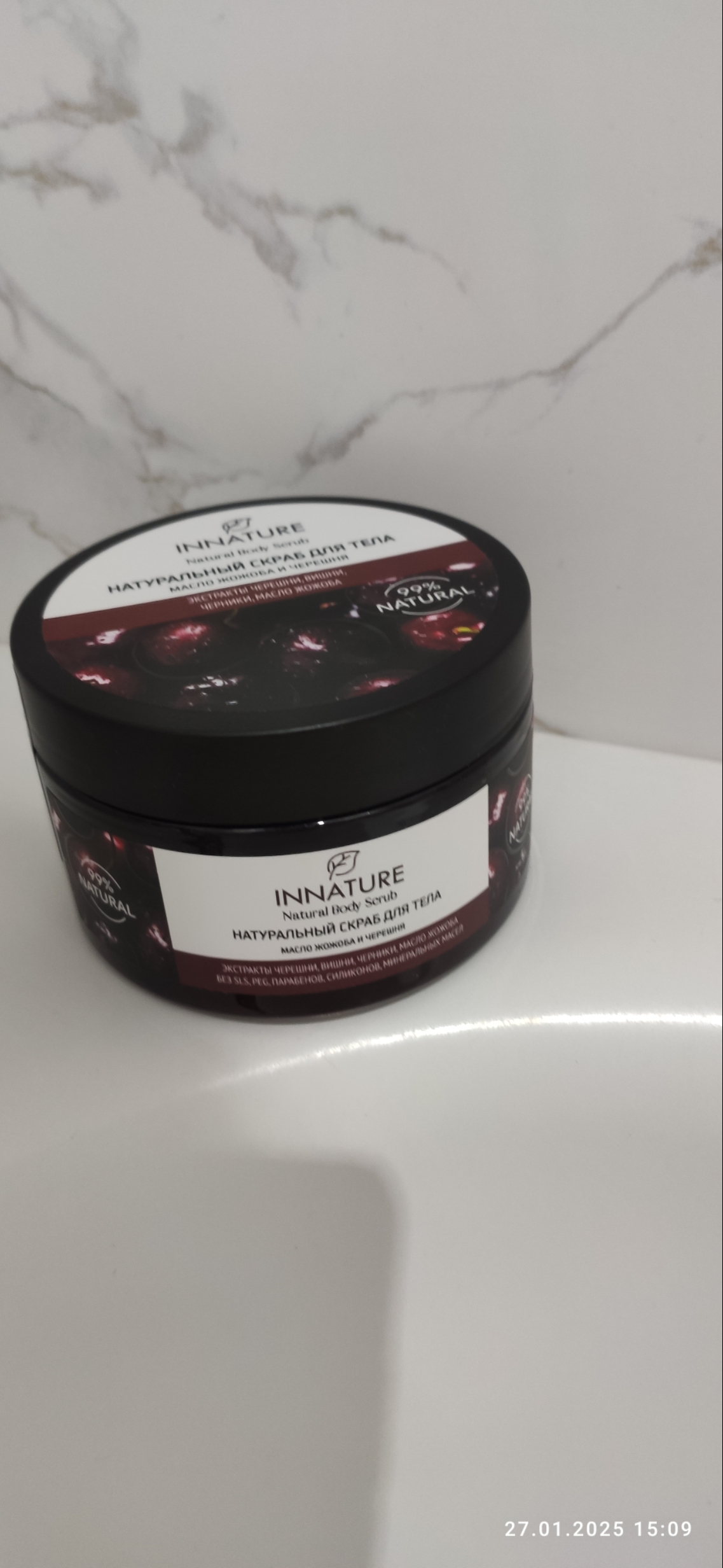 Скраб - середнячок за свою цену: не жесткий, но и не мягкий, в целом пользоваться приятно, кожа после него нежная и напитанная. Для новичков самое оно. Стоит брать хотя бы из-за запаха - сочный, вкусный вишневый аромат, без химозности, любители черешни будут в восторге)