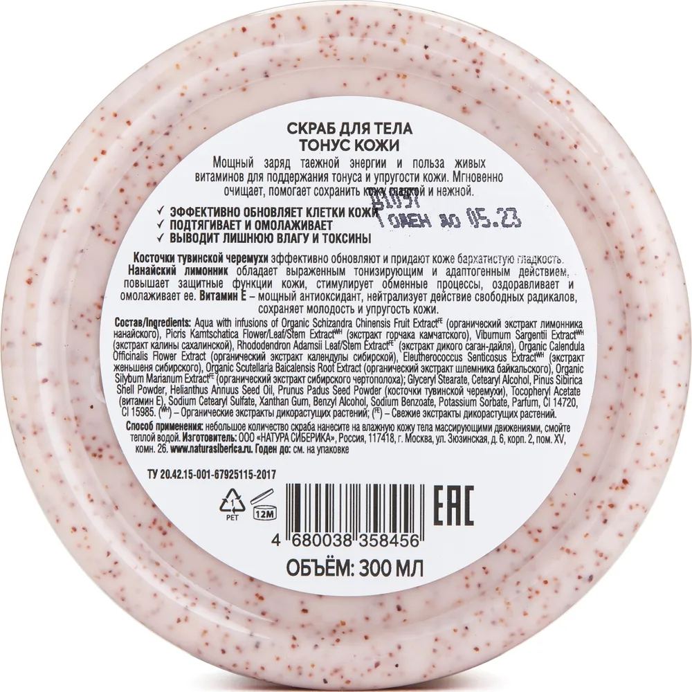 Aqua with infusions of Organic Schizandra Chinensis Fruit Extract (органический экстракт лимонника нанайского), Picris Kamtschatica Flower/Leaf/Stem ExtractWH (экстракт горчака камчатского), Viburnum Sargentii ExtractWH (экстракт калины сахалинской), Schizandra Chinensis Fruit ExtractFE (экстракт лимонника нанайского), Rhododendron Adamsii Leaf/Stem ExtractFE (экстракт дикого саган-дайля), Organic Calendula Officinalis Flower Extract (органический экстракт календулы сибирской), Eleutherococcus Senticosus ExtractWH (экстракт женьшеня сибирского), Organic Scutellaria Baicalensis Root Extract (органический экстракт шлемника байкальского), Organic Silybum Marianum ExtractFE (органический экстракт сибирского чертополоха); Glyceryl Stearate, Cetearyl Alcohol, Pinus Sibirica Shell Powder, Helianthus Annuus Seed Oil, Prunus Padus Seed Powder (косточки тувинской черемухи), Tocopheryl Acetate (витамин Е), Sodium Cetearyl Sulfate, Xanthan Gum, Benzyl Alcohol, Sodium Benzoate, Potassium Sorbate, Parfum, CI 14720, CI 15985.Мы используем файлы cookie для обеспечения удобства работы с сайтом и его контакта с пользователем.