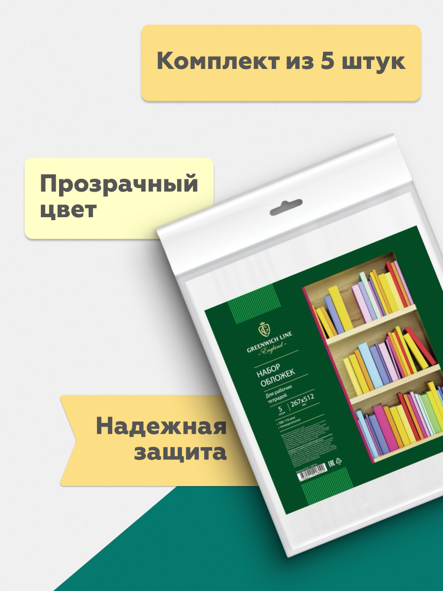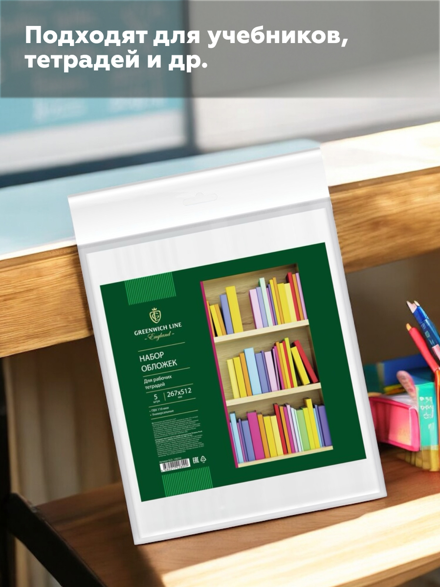 Набор обложек универсальных "Greenwich Line" (5 шт.; 110 мкм; 267х512 мм)