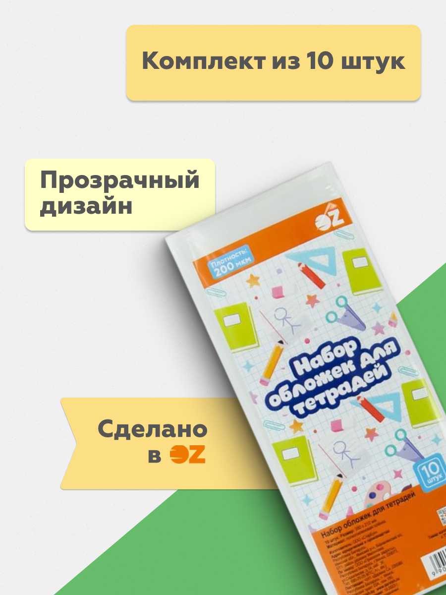 Набор обложек для тетрадей "OZ" (10 шт.; 200 мкм.; 212x350 мм)
