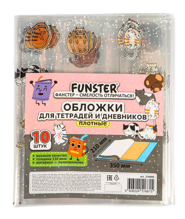 Изготовлены из высококачественного полипропилена (ПП) толщиной 110 мкм. Предназначены для тетрадей и дневников. Размер – 210х350 мм. Набор обложек с дизайном из 10 штук. Не содержат вещества, вредные для здоровья детей.