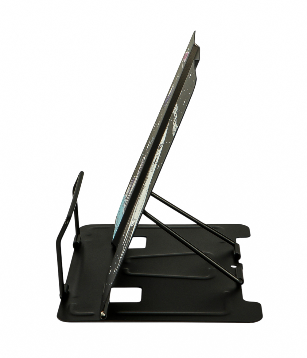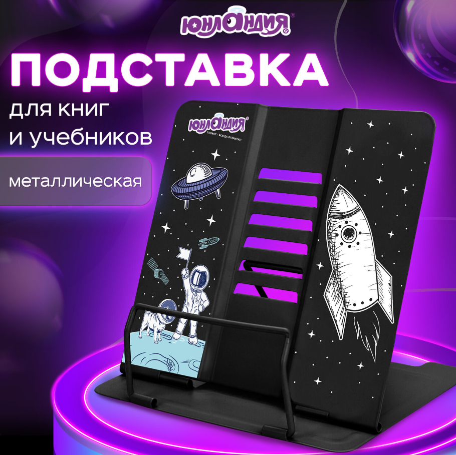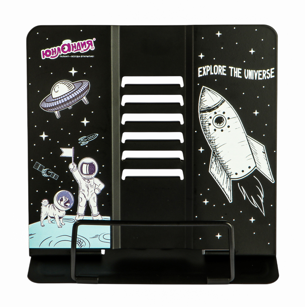Подставка полностью изготовлена из металла, поэтому отлично подойдет для надежной фиксации тяжелых и объемных учебных материалов и книг. Оригинальный дизайн понравится как младшим школьникам, так и школьникам среднего звена. Регулируемый угол наклона обеспечивает удобство при работе с текстом, облегчает чтение и подготовку домашней работы.