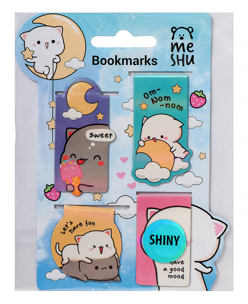 В наборе 4 закладки разных форм и размеров в милых современных дизайнах.