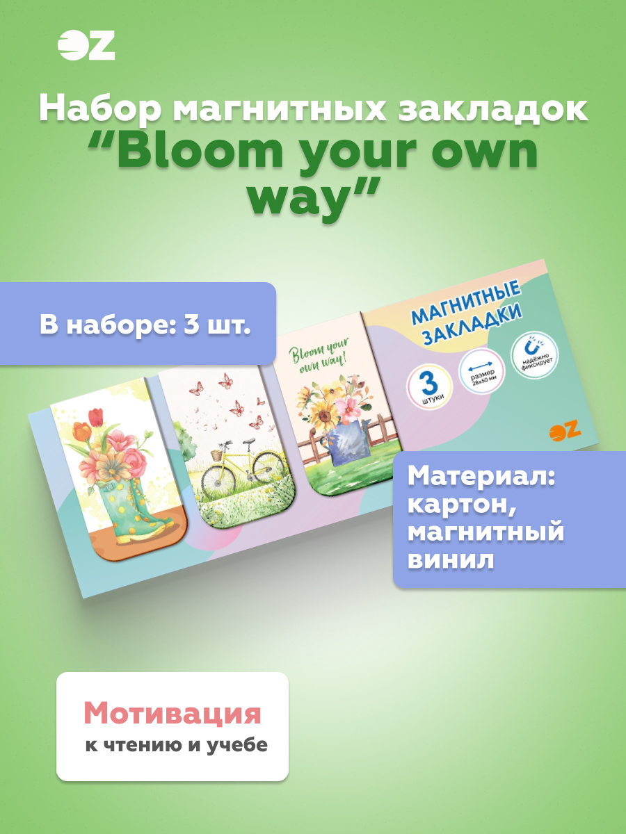 Набор магнитных закладок "Bloom your own way" (3 шт.)