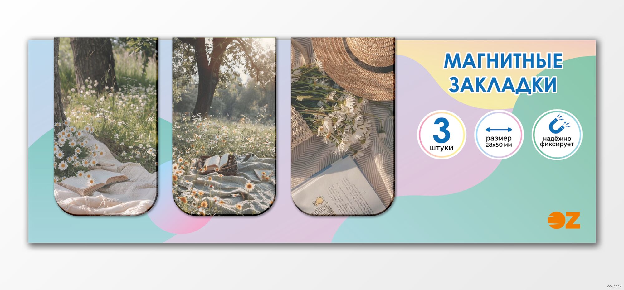 Набор магнитных закладок "Ромашки и книги" (3 шт.)