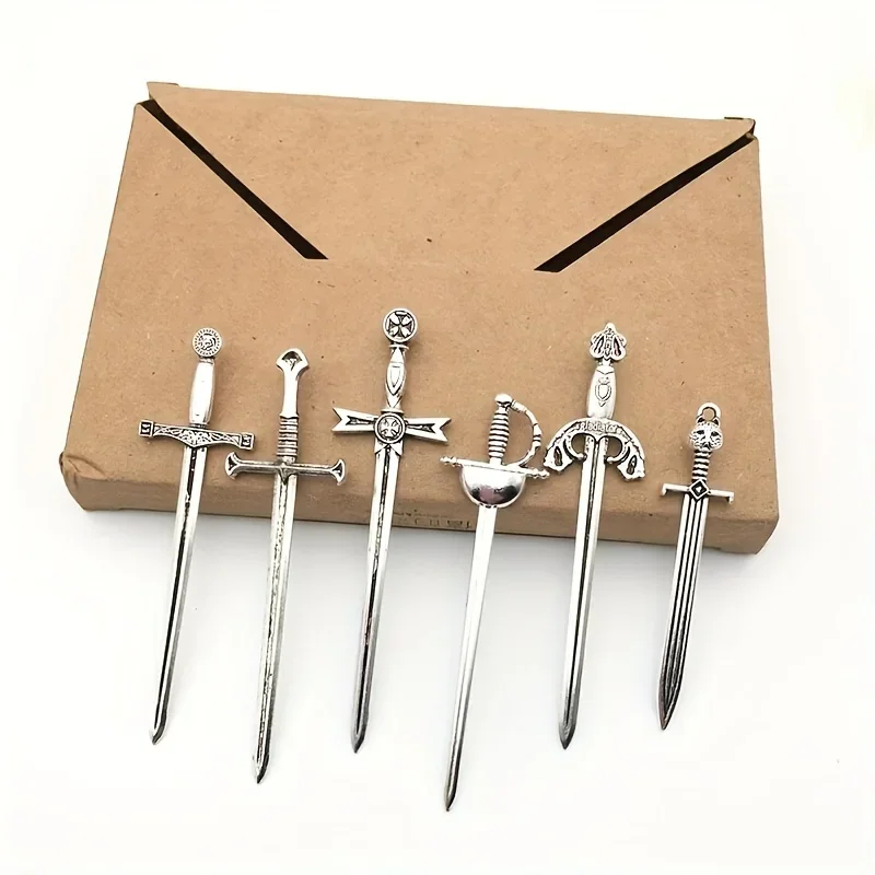 Миниатюрные мечи-закладки с детализированной текстурой. Удобно фиксируют страницы, не повреждая бумагу.