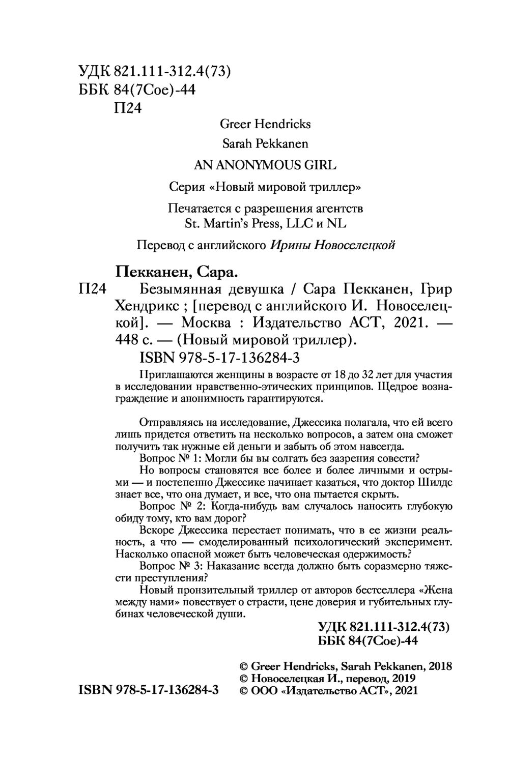Но вопросы становятся все более и более личными и острыми – и постепенно Джессике начинает казаться, что доктор Шилдс знает все, что она думает, и все, что она пытается скрыть.