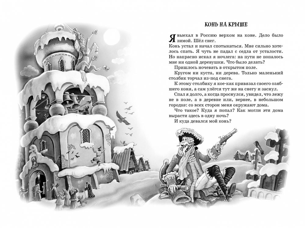Барона Мюнхаузена знают во всём мире – он прославился рассказами о своих необыкновенных приключениях. Согласитесь, вряд ли кому ещё удастся поджечь порох искрами из глаз или забраться по стеблю боба на Луну! А кто не помнит его историй о полёте на ядре или о дереве на рогах оленя, которое выросло из вишнёвой косточки?! Несмотря на всю их неправдоподобность, мы тем не менее в них верим. Как верил в них сам барон Мюнхаузен, "самый правдивый человек на земле"!