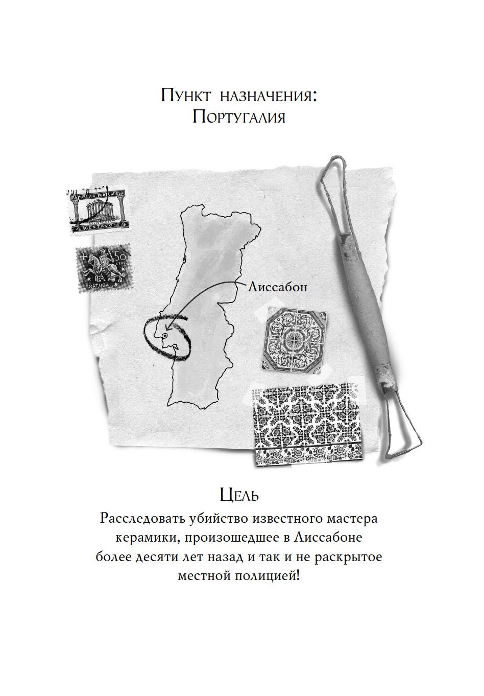 Похоже, детективное агентство "Око Интернешнл" весьма высокого мнения о способностях Ларри. Иначе столь юному сыщику ни за что не поручили бы расследовать... убийство! Десять лет назад в Лиссабоне был отравлен знаменитый художник-керамист. Секретная формула мастерства, которую так жаждали заполучить его ученики, таинственным образом исчезла из запертого сейфа. Следствие зашло в тупик, и дело было закрыто. Однако в десятилетнюю годовщину смерти мастера один из его учеников получает таинственное письмо и обращается за разъяснениями в "Око Интернешнл". Агата и Ларри в сопровождении мистера Кента и Ватсона отправляются в Лиссабон, чтобы насладиться чарующими звуками португальской гитары и пролить свет на давнее преступление...