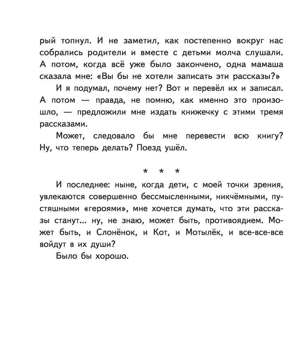 Несколько лет тому назад случилось так, что я оказался в компании вполне взрослых людей и с их маленькими детьми. Это было на паруснике, и я предложил детей выбросить за борт, причем предложил так, что можно было поверить в серьезность моих намерений. Дети слегка испугались, а я, воспользовавшись паузой, рассказал им о Слоненке. Они слушали, не проронив ни слова, а когда я закончил, потребовали еще.