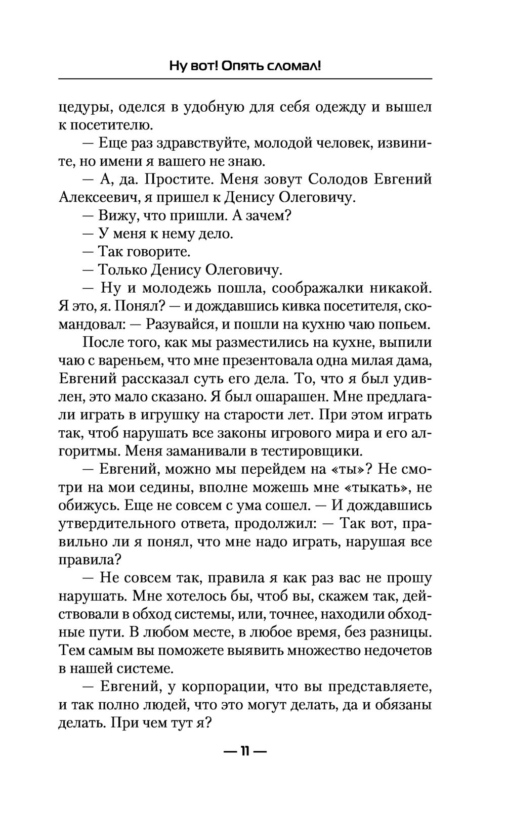 Ему поручено необычное задание. Возможно, последнее в его жизни. Всего-то надо «раскачать» систему, найдя столько нетривиальных возможностей обойти ее, сколько он сможет. Но как быть, если ты умеешь только ломать? И в детстве ты никогда не играл из-за этого в приставки и онлайн-игры? Но родина сказала: "Надо!" И вот опытный диверсант вышел на "тропу войны" со своим девизом по жизни из старого советского мультика: "Ломать-крушить и рвать на части! Вот это жизнь, вот это счастье!"
