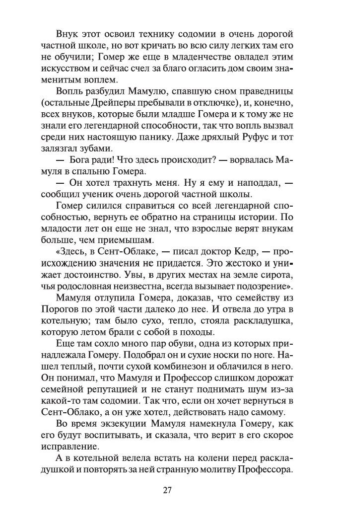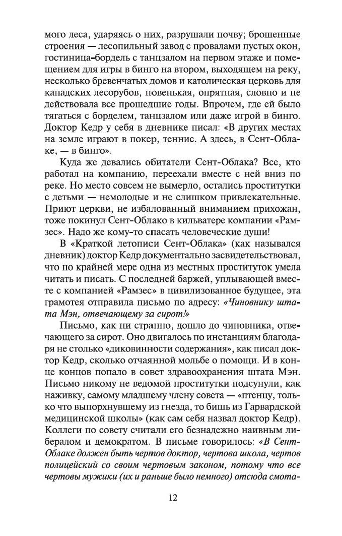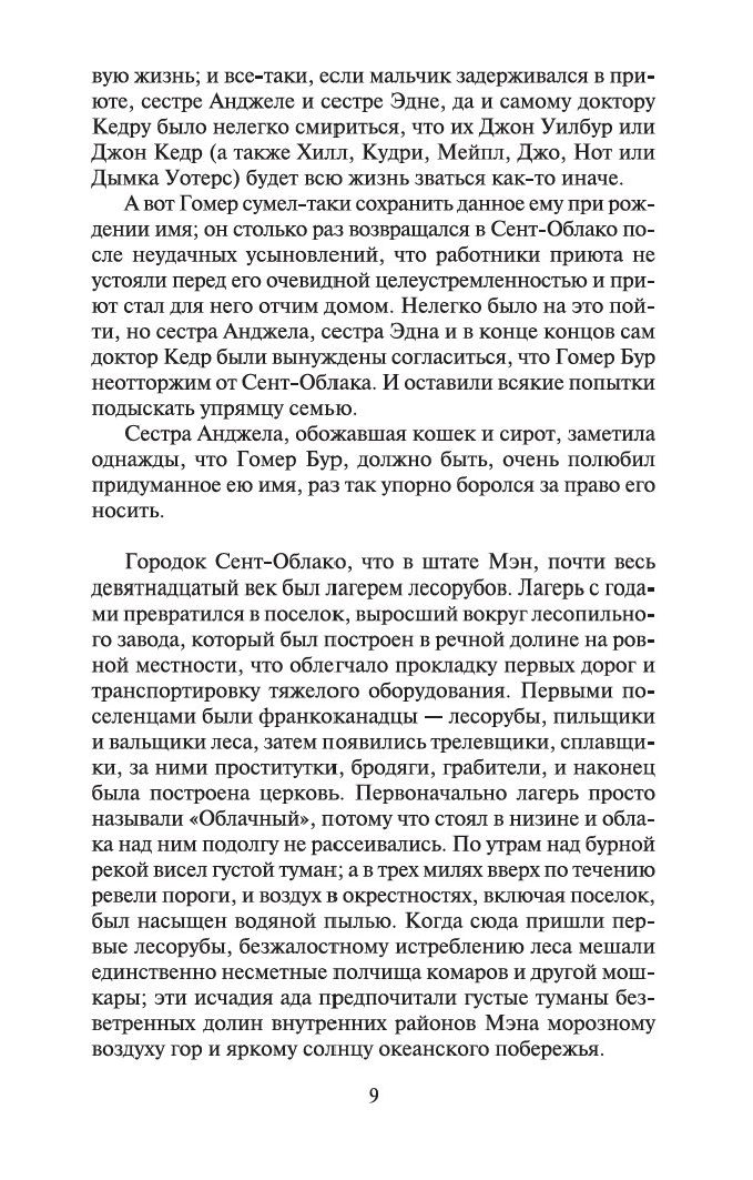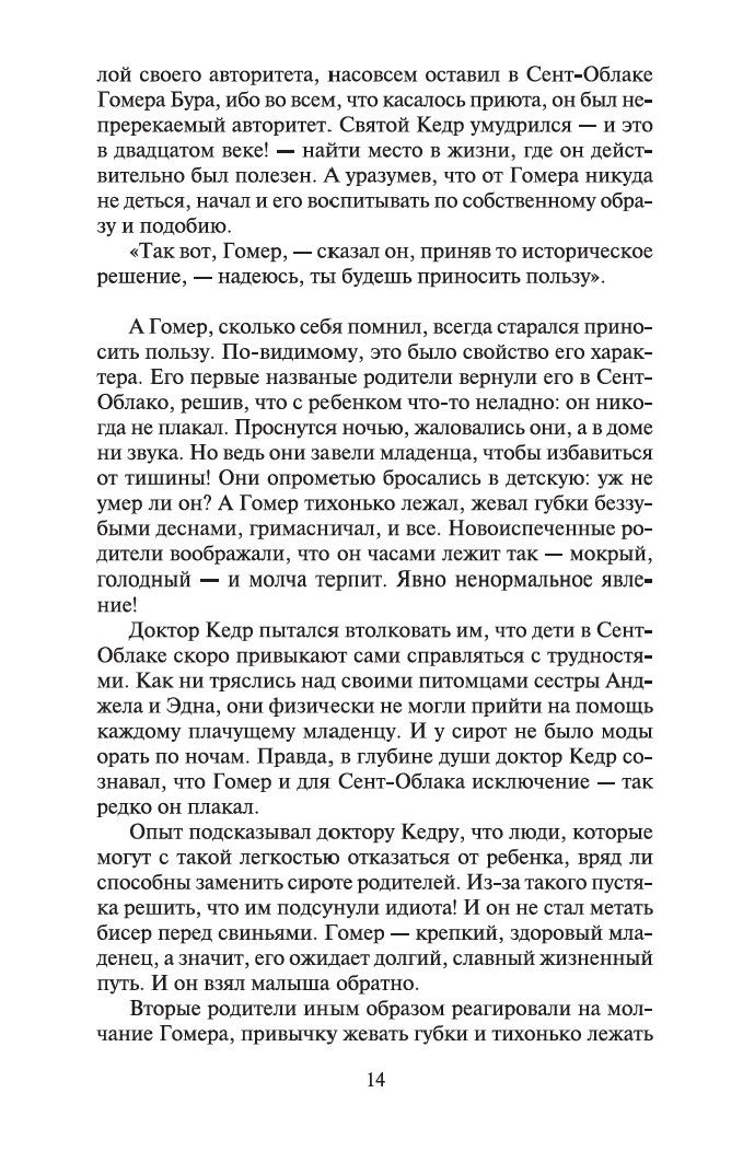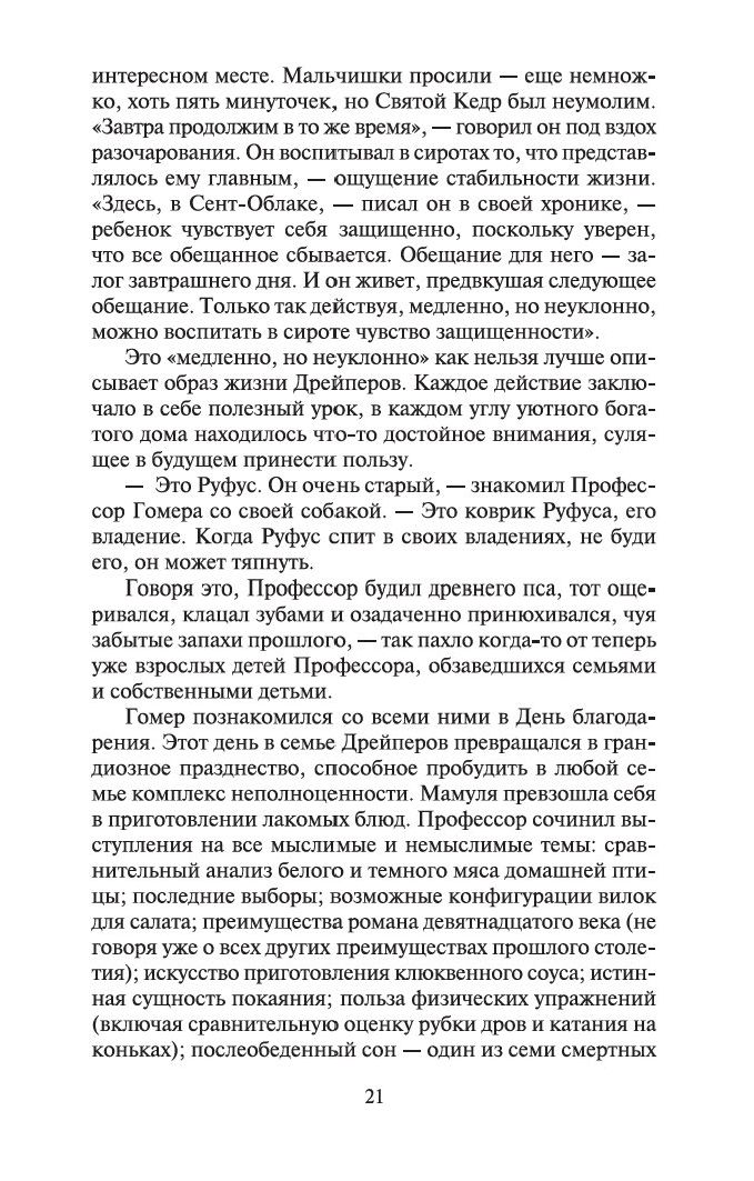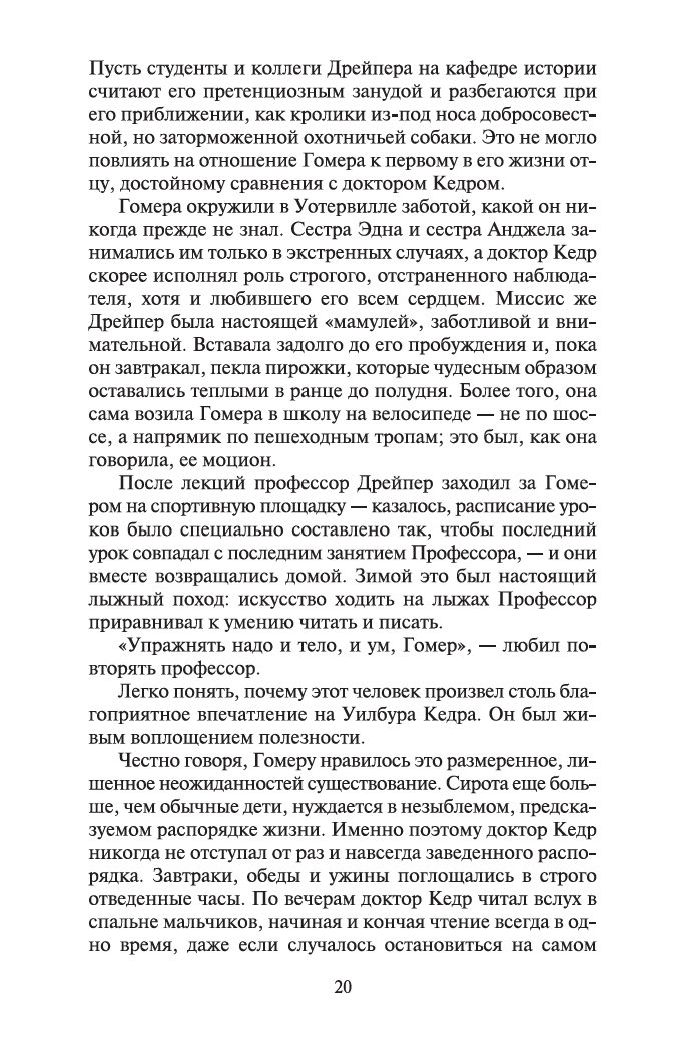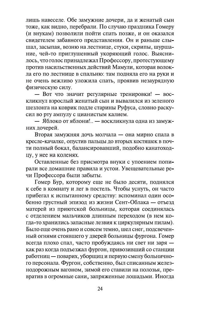Я уже читала раньше эту книгу, воспоминания о событиях в основном стерлись, оставались только какие-то обрывки в памяти. Теперь же с большим удовольствием ее перечитала. Не могу сказать, что спустя годы книга для меня стала менее интересной. С первых страничек память возвращала забытое, а я уходила с головой в грустную, тягучую и сложную историю жизни жителей сиротского приюта, Сердечной бухты и Сердечного камня. Темы, затронутые в романе, на мой взгляд, трудные, противоречивые, личные. Рассказать о сиротах, абортах, пороках надо умело, чтобы не погрязнуть в безысходности. Среди мрака должен быть свет, среди зла найдется доля доброты, среди печали есть место юмору. У Ирвинга это отлично получилось! Здесь положительные герои совершают ошибки и нарушают правила. А отрицательные пропитаны не только грубостью, черствостью и пошлостью, в них есть и хорошее, они ищут покоя и умеют любить. Многому удалось уделить внимание автору, переплести проблемы современного общества с общечеловеческими ценностями, зацепить цели и место человека в своей собственной жизни. Сент-Облако - отдельное место на земле, где живут необыкновенные люди, преданные своей работе, верующие в свое богоугодное дело. Здесь свои правила и законы. Именно здесь и начинается история. Место, где дети сразу рождаются сиротами. Место, где женщина без огромного риска для здоровья, может сделать свой выбор. Аборт. То, что еще не признано, и считается в обществе делом дьявола. Я очень капризно отношусь к интимной теме в литературе. Меня отталкивает пошлость, слишком откровенные описания часто выглядят вульгарными в тексте и портят всё впечатление. Многим писателям так и не удалось меня в этом переубедить. Не знаю, как получилось это сделать Дж. Ирвингу, ведь тема очень личная, очень интимная, много подробностей анатомии, но нигде не было лишнего, пошлого, вульгарного. Ну, может чуть-чуть... В эпизоде с фотографией. Но и эпизод это сыграл большую роль в книге, опустить его просто некуда. Но не только Сент-Облако фигурирует в книге, есть и другие места на земле, где идет другая жизнь, и есть надежда на лучшее, только надо ждать, всегда ждать... Здесь живут разные люди. Кто-то не от хорошей жизни будет знаком с Сент-Облаком, а кто-то и никогда не слышал об этом месте. Но и здесь существуют правила, у всех свои. Попадая на чужую территорию, надо их придерживаться. Иногда это слишком жестоко. Наблюдая за судьбами героев романа, приходилось волноваться, обдумывать их поступки, не соглашаться, разочаровываться в одних и смотреть иначе на других. Никто из героев для меня не остался чужим. Даже в мелочах и небольших эпизодах проявляется характер, происходит знакомство и узнавание. Есть желание рассказать о многих полюбившихся персонажах, еще раз вспомнить их добрым словом, но и у меня свои правила, не раскрывать сюжет и отношения между героями в отзывах. Только впечатления в целом. Роман завершен. После повторного чтения оценка ниже не стала, с героями, какие бы они не были, расстаться сложно. А фильм по книге смотреть все так же не хочу. Боюсь потерять свою атмосферу, нет желания смешивать чужой взгляд со своим впечатлением.