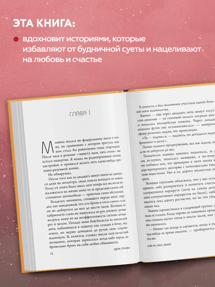 Эта книга соединила два бестселлера Джона П. Стрелеки, "Кафе на краю земли" и "Возвращение в кафе", которые изданы миллионными тиражами и переведены на 30 языков. Каждый из нас время от времени задает себе вопросы: "кто я?", "куда я иду?", "счастлив ли я?". Но найти ответы и следовать своему собственному пути не так-то просто. Здесь вы найдете вдохновляющие истории о том, как избавиться от мимолетной суеты современного мира, отбросить страхи и сомнения и открыться для счастливых перемен.