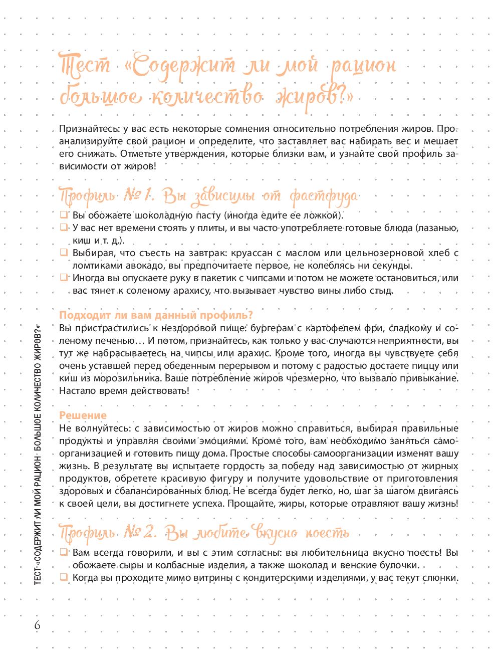 Мы обожаем жирные продукты (картофель фри, сыр, пирожные, колбасы) и одновременно ненавидим (прочь, калории!). Хватит переживать и винить себя! Мы знаем, что "хороший" жир полезен и даже уменьшает запасы калорий и помогает похудеть! При каких условиях это работает? Делать правильный выбор и дозировать (прощайте, пакетики с чипсами). Ежедневно выполняйте программу "Ноль жира": следите за своим питанием, отмечайте маленькие и большие достижения (#нольсыра), укрепляйте мотивацию и контролируйте вес. Результат: с каждой неделей вы будете становиться стройнее и энергичнее!