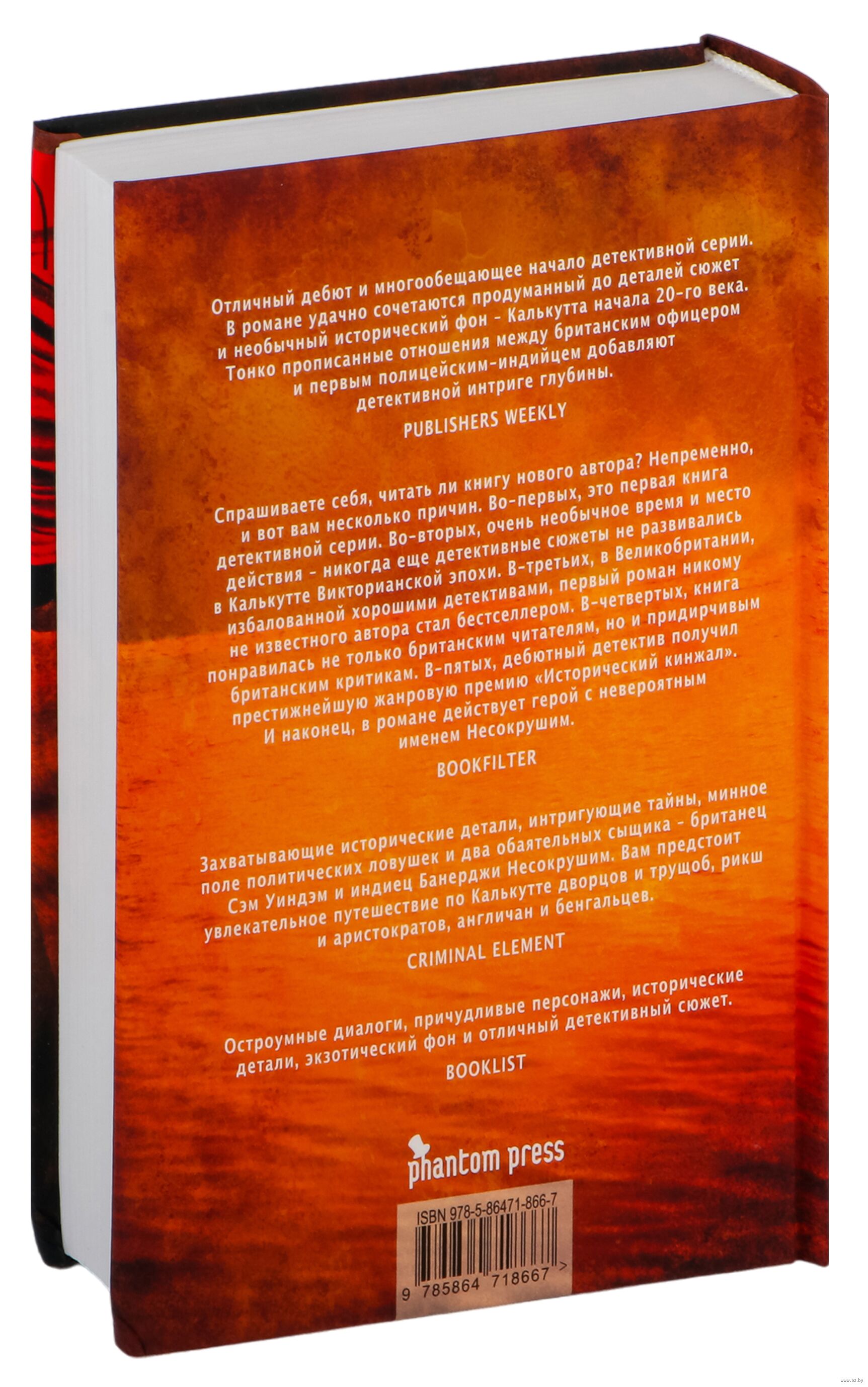 Отчаянно желая начать все сначала, капитан Сэм Уиндхем прибывает из Британии, чтобы занять важный пост в полиции Калькутты. Вскоре его вызывают на место странного убийства. Жертва – высокопоставленный чиновник, тело нашли в трущобном квартале, где европейцы не бывают, скомканная записка в его рту требует, чтобы британцы покинули Индию, а иначе последуют новые жертвы. Капитан Уиндхем берет в помощники первого в полиции офицера-индийца, сержанта Банерджи по прозвищу Несокрушим. Быстро выясняется, что история куда запутанней, чем политическое убийство. Атмосферный, в духе Конана Дойля детектив, разворачивающийся в ярких декорациях колониальной Индии.