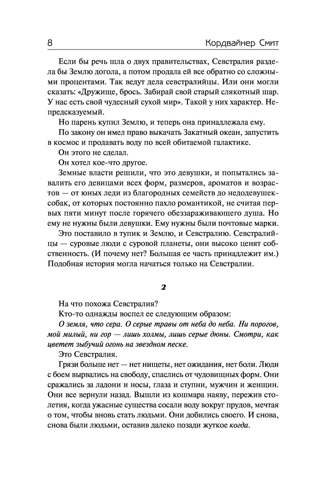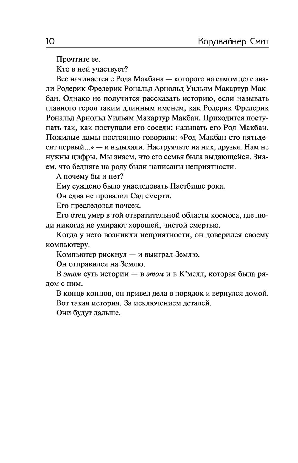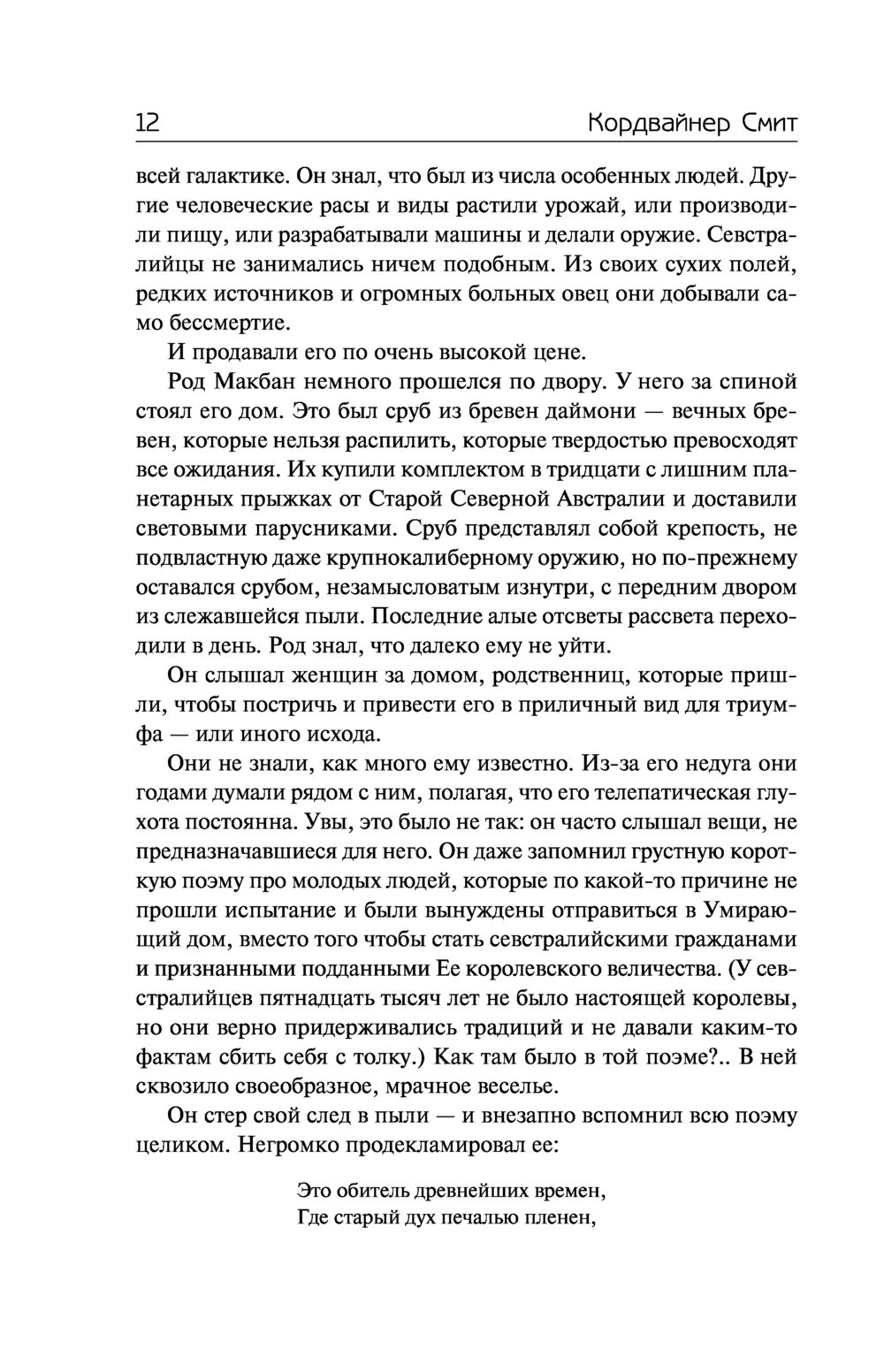Кордвайнер Смит – один из четырех псевдонимов Пола Майрона Энтони Лайнбарджера (1913 – 1966), человека многих талантов, родившегося, что называется, с золотой ложкой во рту. Его отец был видным дипломатом, советником и другом Сунь Ятсена (лидер Китая 1920-х годов стал крестным отцом маленького Пола). Постоянные переезды, в том числе и по соображениям безопасности, из США в Европу и Азию не помешали Полу выучиться шести языкам и получить степень доктора политических наук в 23 года. Занимая профессорскую должность в Университете Джона Хопкинса в Вашингтоне, он параллельно сотрудничал с ЦРУ и разрабатывал первую в армии США секцию психологической войны.