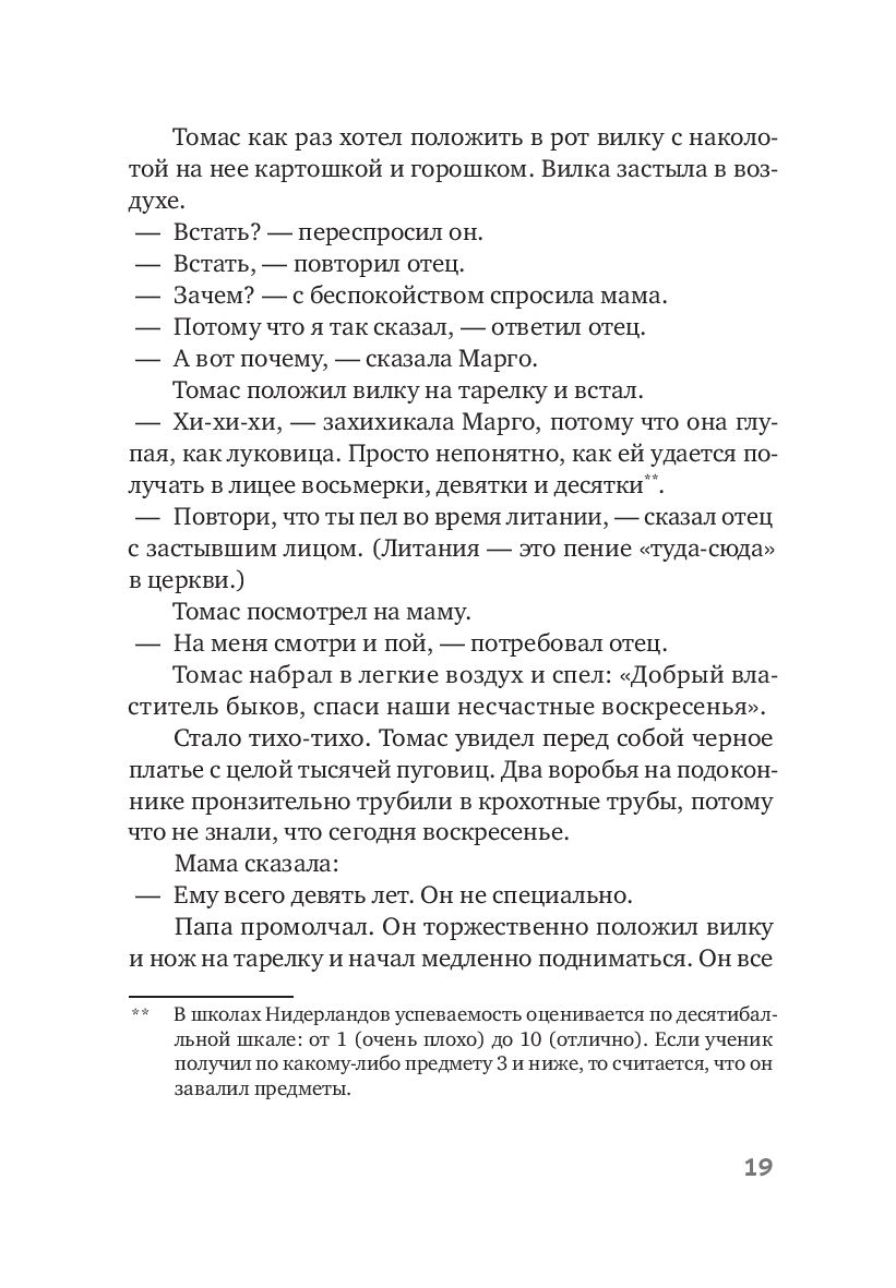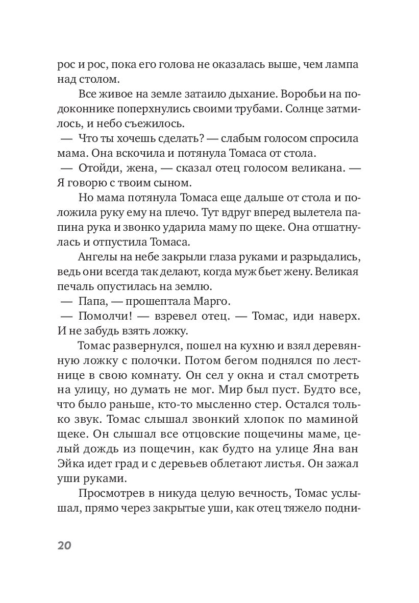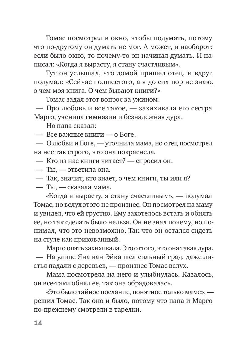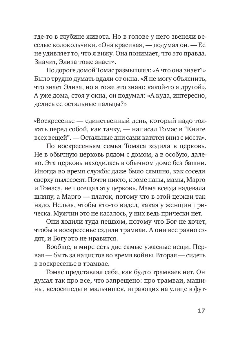 Девятилетний Томас часто видит то, чего не видят другие: тропических рыбок в городских каналах; необыкновенную красоту Элизы, девушки с кожаной ногой; доброту старушки соседки, которую все считают ведьмой. И Иисуса, который частенько приходит к Томасу поболтать.