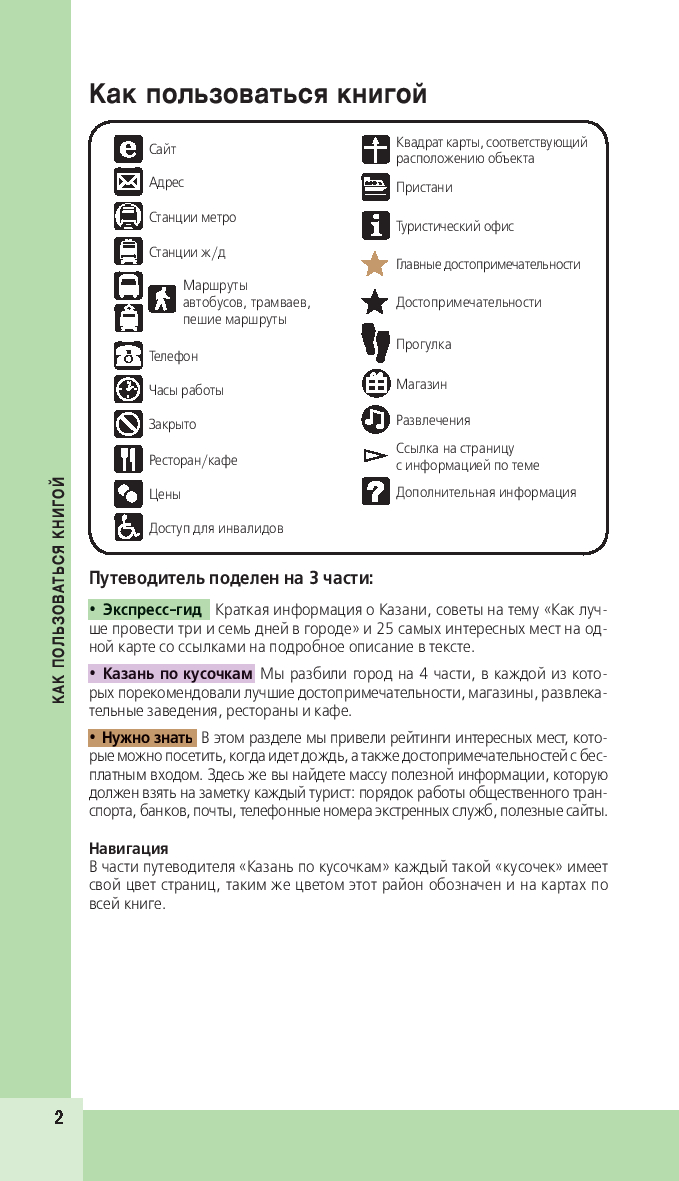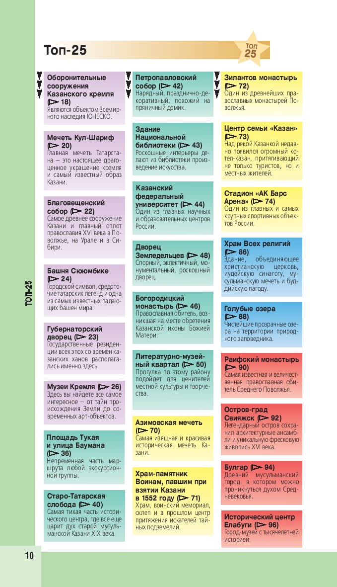 Перед вами гид по Казани. В нем содержится краткая информация о городе, советы, как лучше провести три и семь дней, и 25 главных достопримечательностей. Также в книге вы найдете описания самых интересных мест каждого района города.