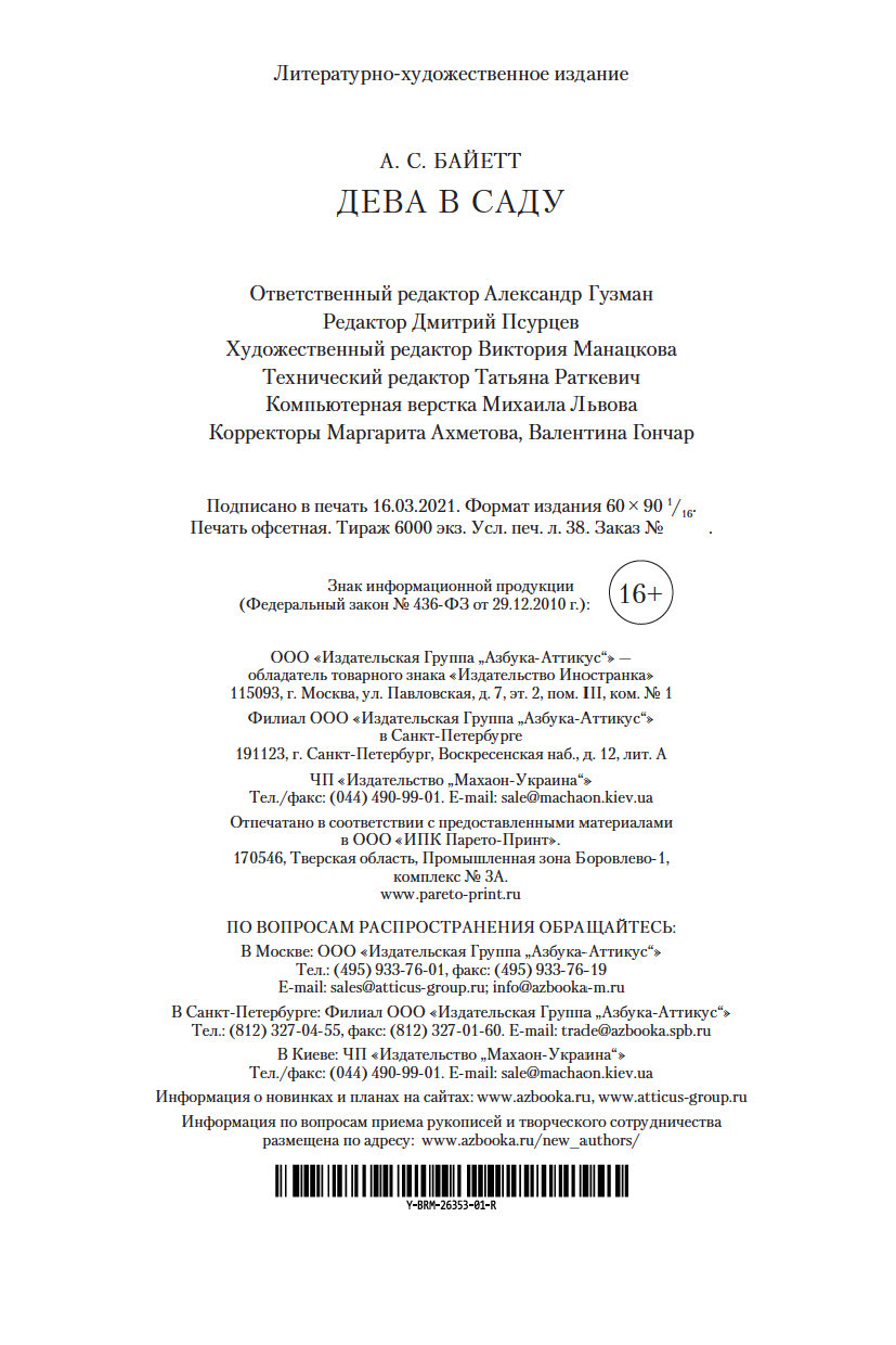 | Изготовитель | ООО "Издательство "Иностранка". 109017, РФ, г. Москва, ул. Пятницкая, 41 |