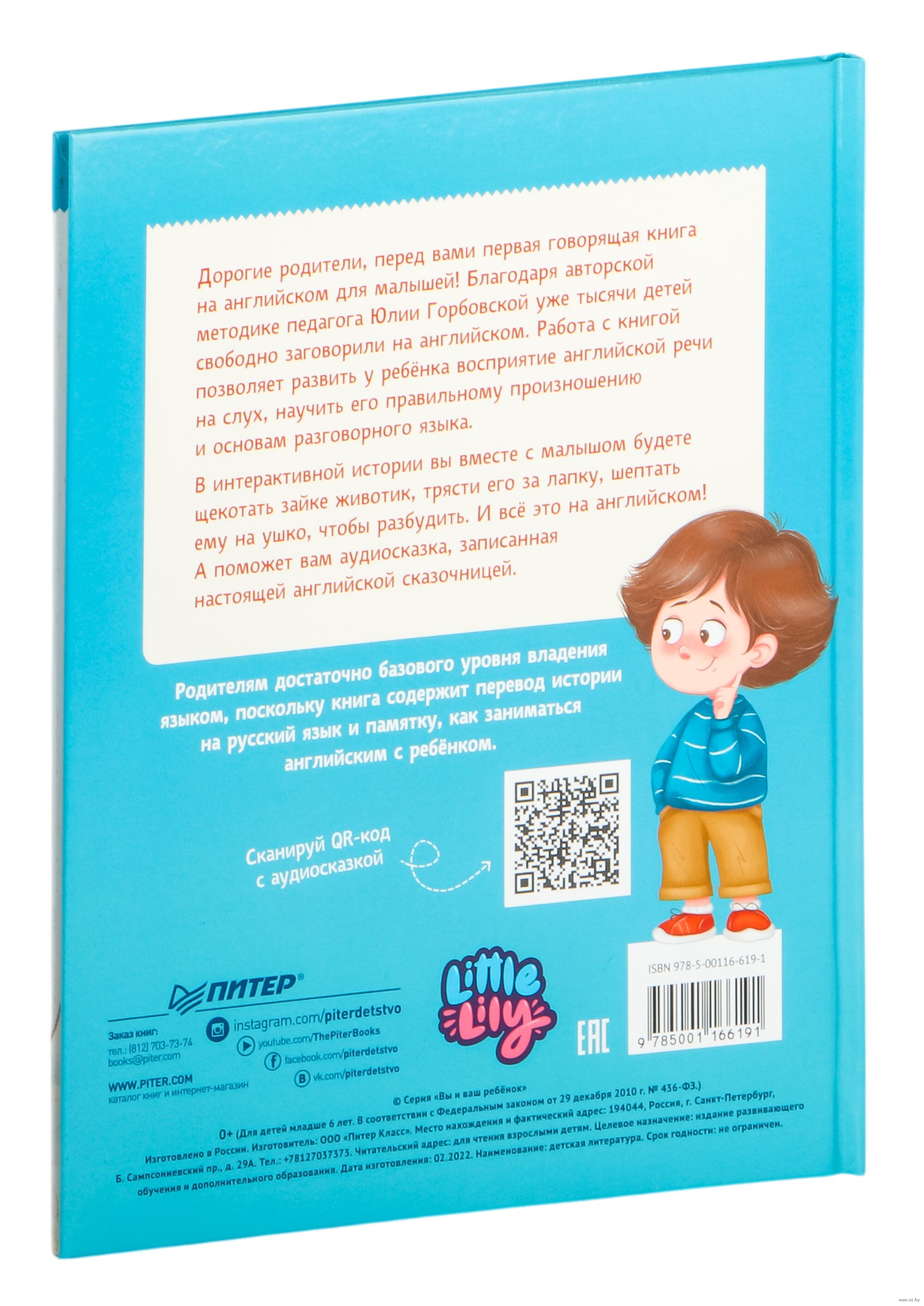 Дорогие родители, перед вами первая говорящая книга на английском для малышей! Благодаря авторской методике педагога Юлии Горбовской уже тысячи детей свободно заговорили на английском. Работа с книгой позволяет развить у ребёнка восприятие английской речи на слух, научить его правильному произношению и основам разговорного языка.