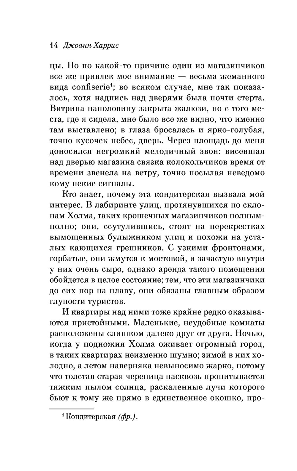 На одной из тихих улиц Монмартрского холма нашли прибежище Янна и ее дочери Розетт и Анни. Они мирно и даже счастливо живут в квартирке над своей маленькой шоколадной лавкой. Ветер, который в былые времена постоянно заставлял их переезжать с места на место, затих – по крайней мере, на время. Ничто не отличает их от остальных обитателей Монмартра, и возле их двери больше не висят красные саше с травами, отводящими зло. Но внезапно в их жизнь вторгается Зози де л'Альба, женщина в ярко-красных, блестящих, как леденцы, туфлях, и все начинает стремительно меняться... "Леденцовые туфельки" Джоанн Харрис – это новая встреча с героями знаменитого романа "Шоколад", получившего воплощение в одноименном голливудском фильме режиссера Лассе Халлстрёма (с Жюльетт Бинош, Джонни Деппом и Джуди Денч в главных ролях), номинированном на "Оскар" в пяти категориях.