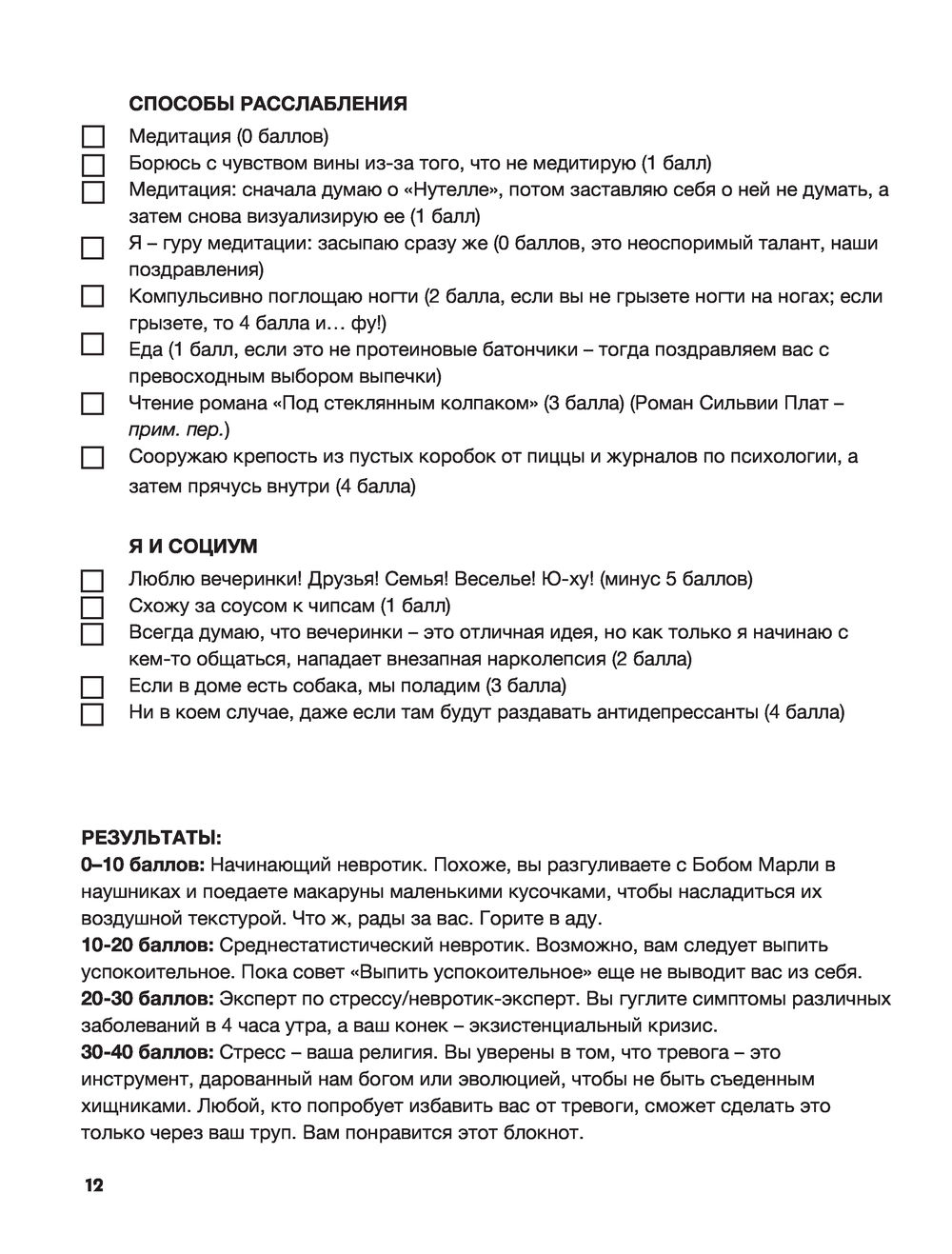 "Мой внутренний ребенок был в полном восторге! А мой реальный взрослый наконец-то успокоился!" – пишет Кейтлин. "Эта книга помогла мне понять, что в своих тревогах я не одинока, ну и посмеяться над их абсурдностью!" – комментирует Бет. Попробуйте на себе магию этого терапевтического блокнота, который уже помог тысячам людей по всему миру справиться с тревогой и стрессом. Тебя постоянно что-то тревожит? Ситуация в мире, работа или, быть может, страх за себя самого? Ты не одинок: нас – тоже! Поэтому мы разработали специальный блокнот, чтобы попрощаться со всеми навязчивыми мыслями, что так и лезут в голову перед сном. Наполовину дневник, наполовину блокнот, этот мощный инструмент содержит много успокоительных фактов, заданий, ребусов, тестов и даже раскрасок. Он поможет тебе посмеяться над своими страхами и осознать, что ты в них не одинок. Что мы знаем о дезинфицирующих средствах для рук, вот тебе успокаивающий факт, а теперь лови – дзен-мантры для тревожных людей, а тут какие-то неясные болезни, которых, скорее всего у нас нет, – давай перечеркаем их все! И раскрасим напоследок успокаивающую бабушку и узнаем, как построить подземный бункер. Одновременно забавный, с легким налетом сарказма и действительно успокаивающий – такой творческий блокнот отлично подойдет, чтобы расслабиться после тяжелого дня.