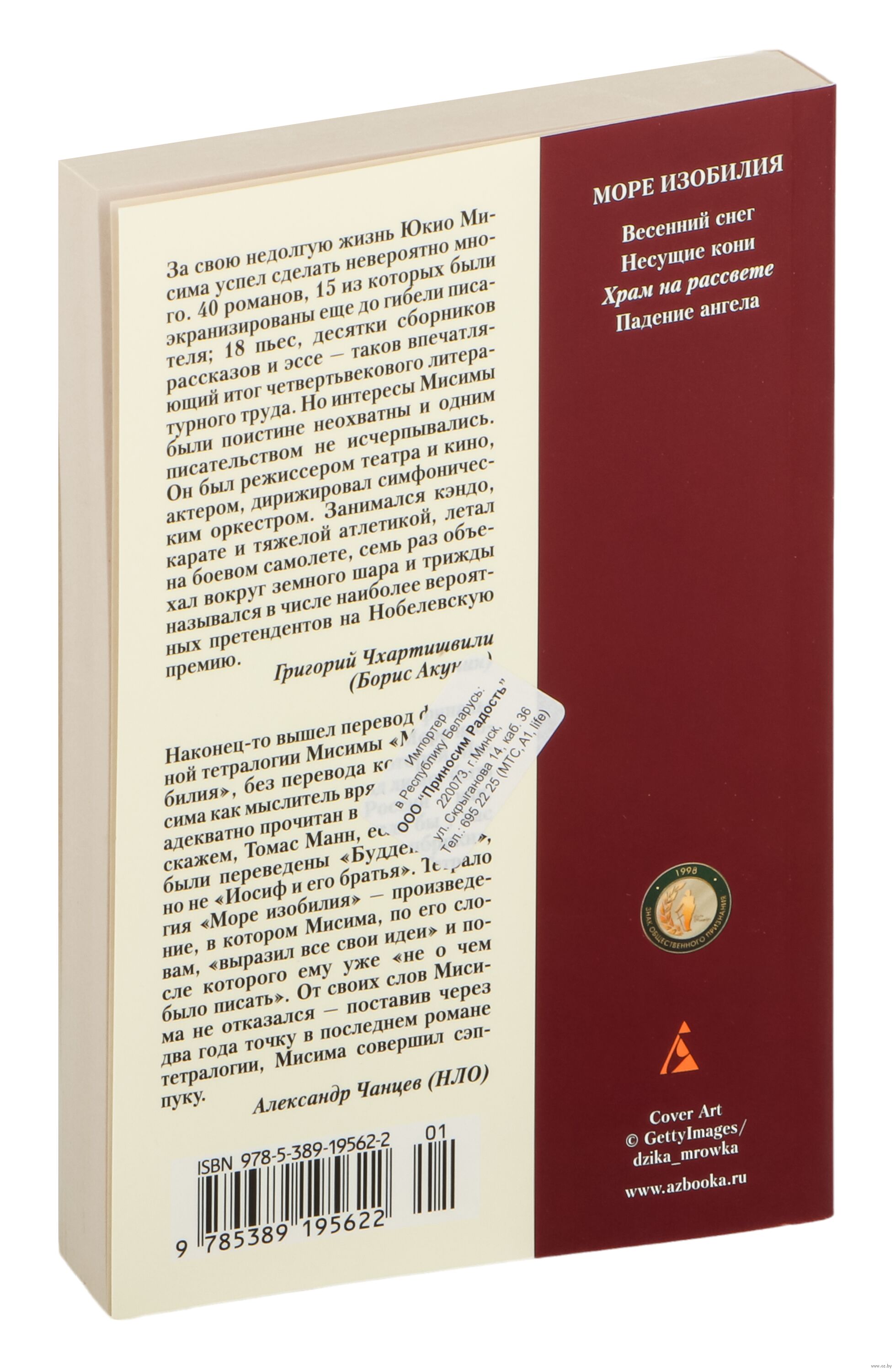 "Храм на рассвете" – третий роман тетралогии "Море изобилия", считающейся вершиной сочинительства Мисимы и своего рода творческим завещанием; это произведение, в котором Мисима, по его словам, "выразил все свои идеи" и после которого ему уже "не о чем было писать". Завершив последний роман тетралогии, он поставил точку и в своей жизни.
