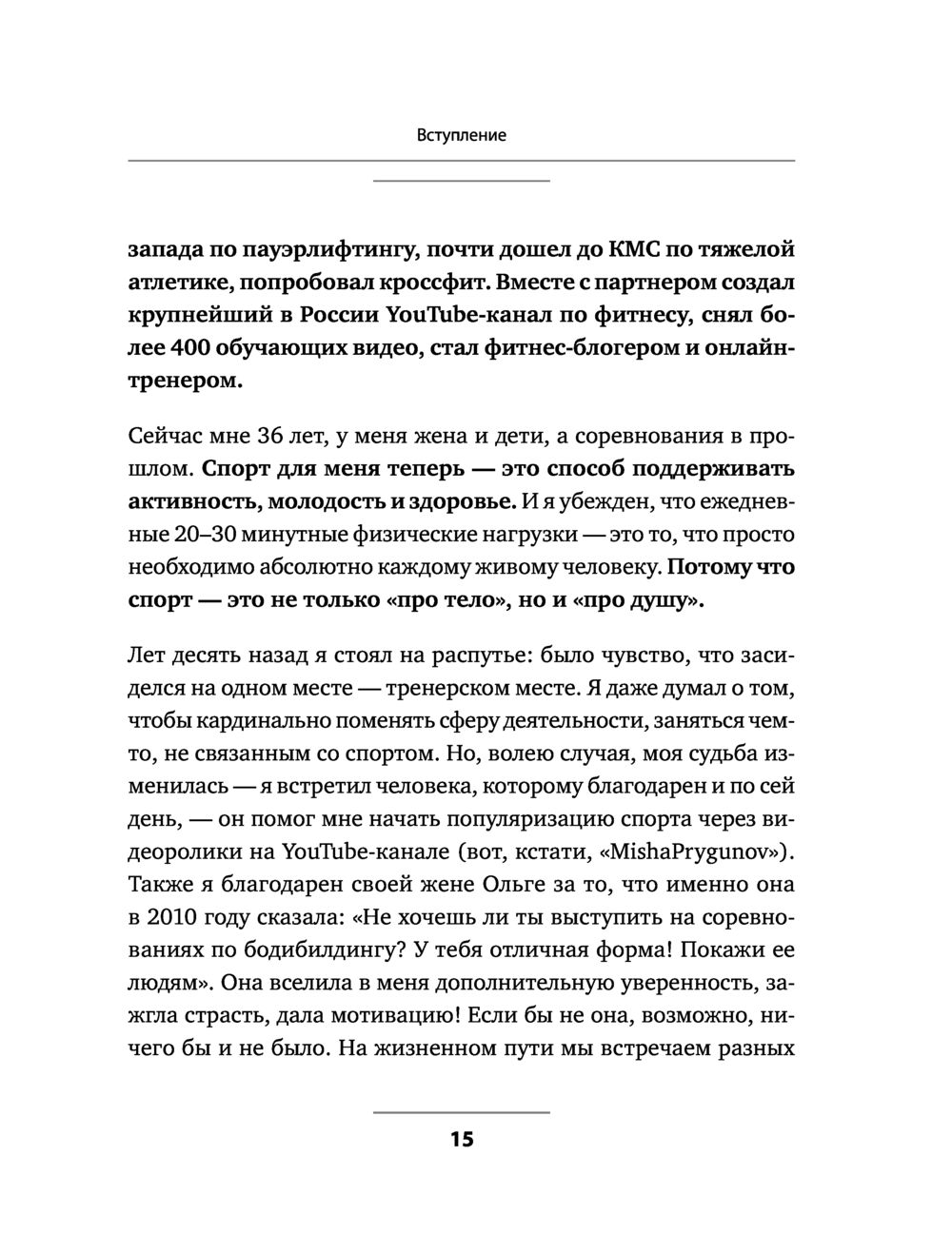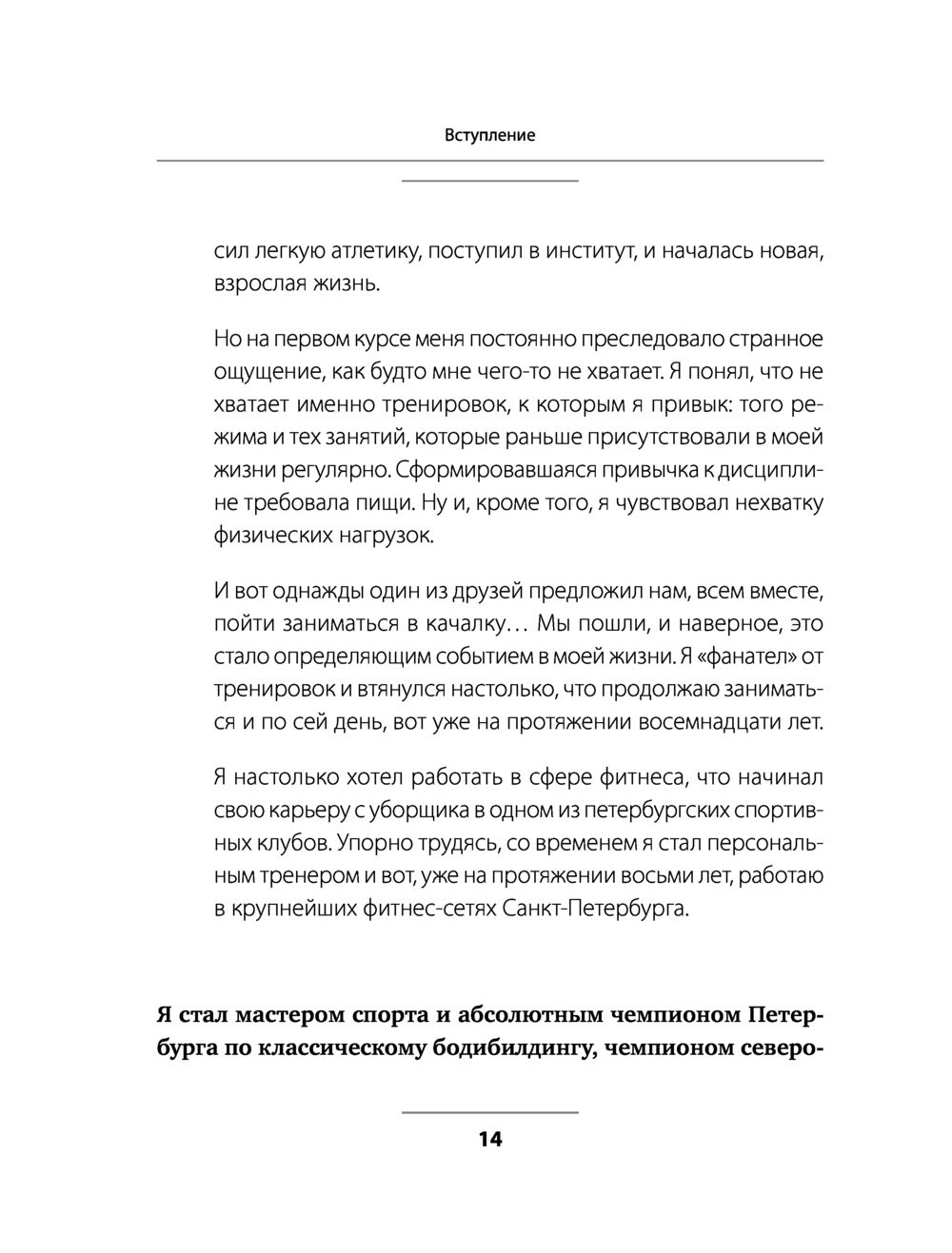 Автор книги, Михаил Прыгунов – профессиональный тренер, мастер спорта России по бодибилдингу, чемпион Санкт-Петербурга по классическому бодибилдингу, а также популярный YouTube-блогер – написал эту книгу специально для того, чтобы ваше тело сказало вам спасибо!