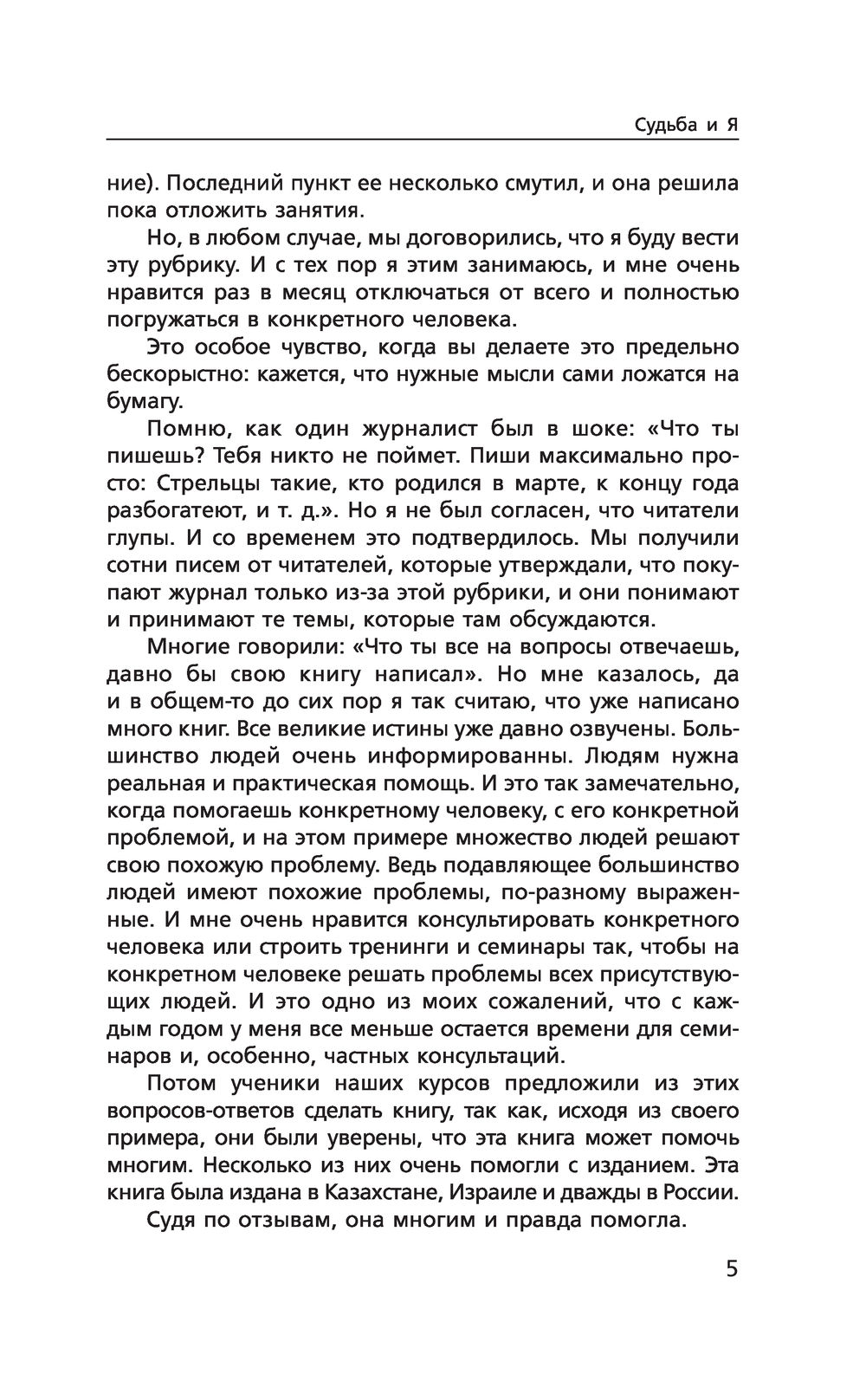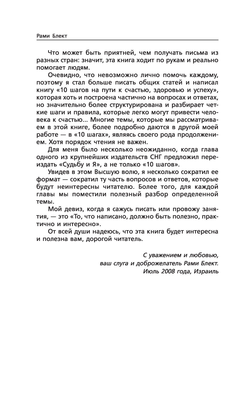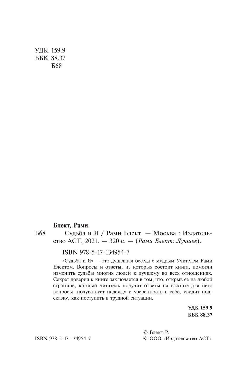 "Судьба и Я" – это душевная беседа с мудрым Учителем Рами Блектом. Вопросы и ответы, из которых состоит книга, помогли изменить судьбы многих людей к лучшему во всех отношениях. Секрет доверия к книге заключается в том, что, открыв ее на любой странице, каждый читатель получит ответы на важные для него вопросы, почувствует надежду и уверенность в себе, увидит подсказку, как поступить в трудной ситуации.