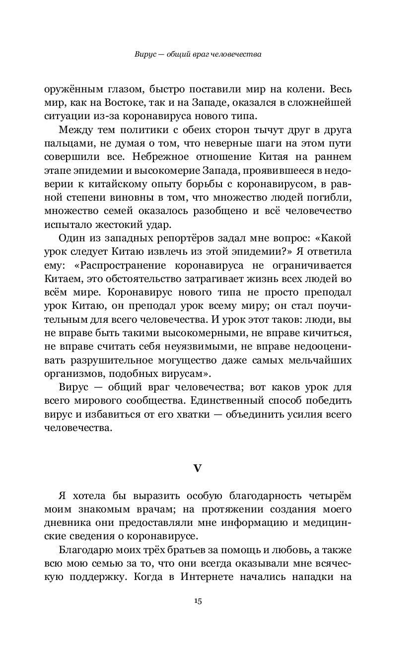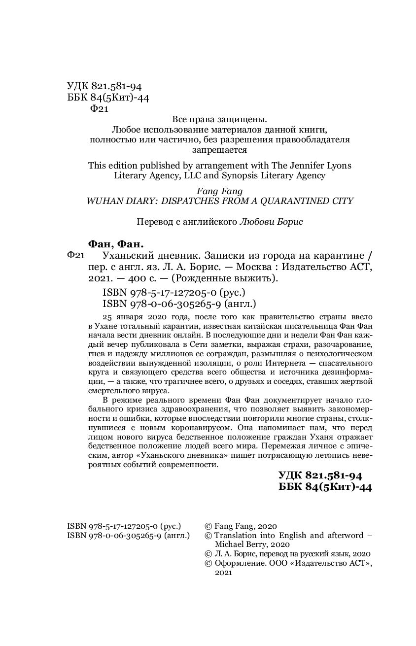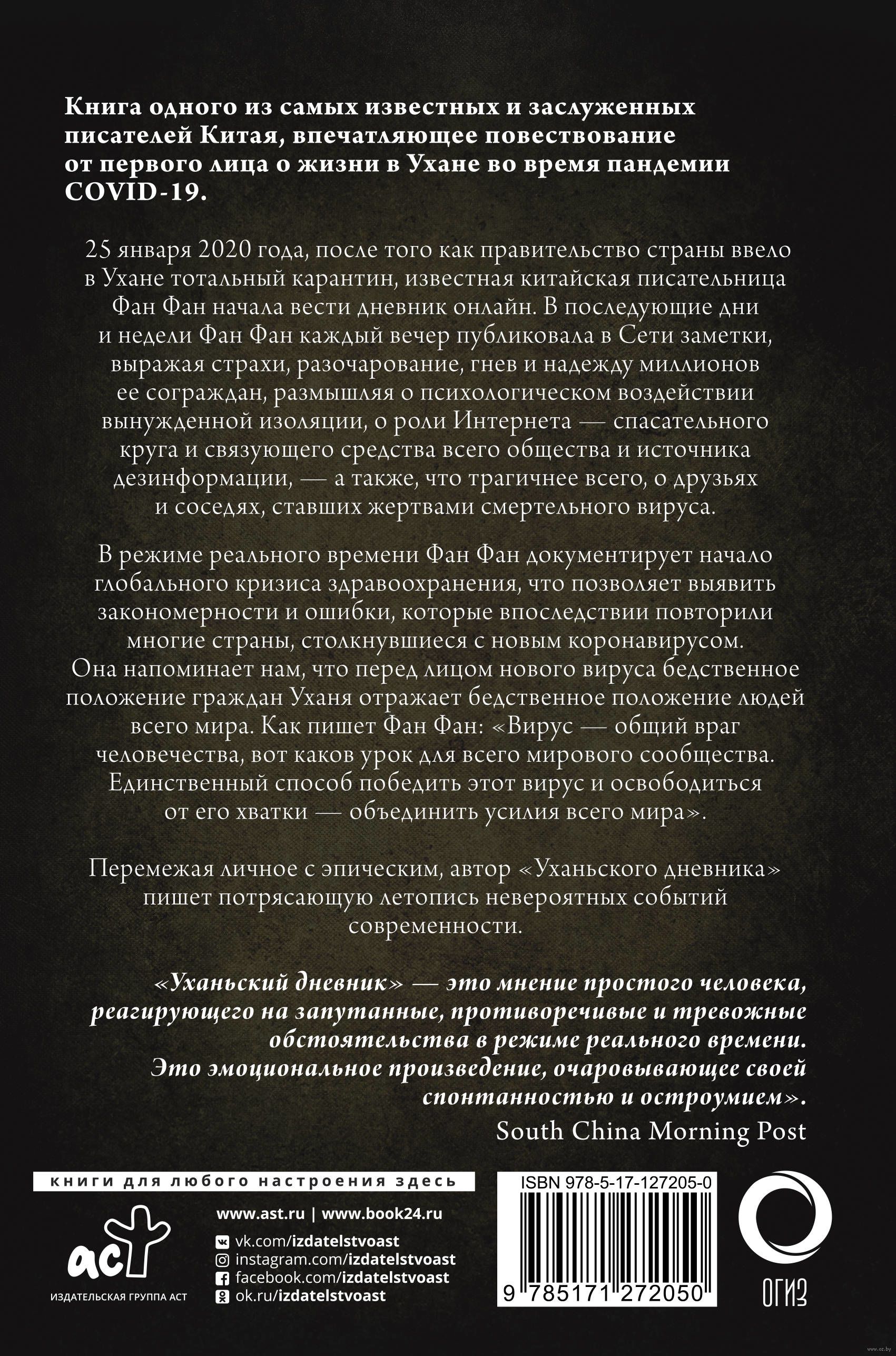 25 января 2020 года, после того как правительство страны ввело в Ухане тотальный карантин, известная китайская писательница Фан Фан начала вести дневник онлайн. В последующие дни и недели Фан Фан каждый вечер публиковала в Сети заметки, выражая страхи, разочарование, гнев и надежду миллионов ее сограждан, размышляя о психологическом воздействии вынужденной изоляции, о роли Интернета – спасательного круга и связующего средства всего общества и источника дезинформации, – а также, что трагичнее всего, о друзьях и соседях, ставших жертвами смертельного вируса.