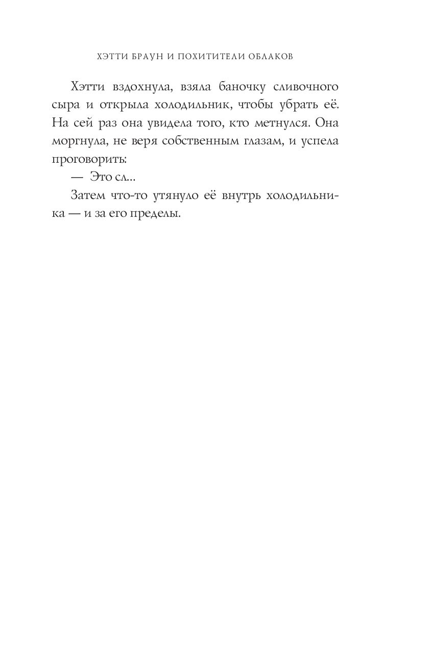 Великая армия драконов летела, никем незамеченная, сопровождаемая лишь шипением воздуха, который они так грациозно взрезали. Как такое может быть? Легко, если драконы размером с воробья, а жители страны не любят смотреть в небо. Все равно ничего хорошего оттуда упасть не может, ведь уже много лет в этой земле не было дождя. Чтобы добыть хоть несколько капель воды обитатели страны воруют облака из нашего мира. И однажды вместе с облаком они случайно забирают Хэтти Браун...