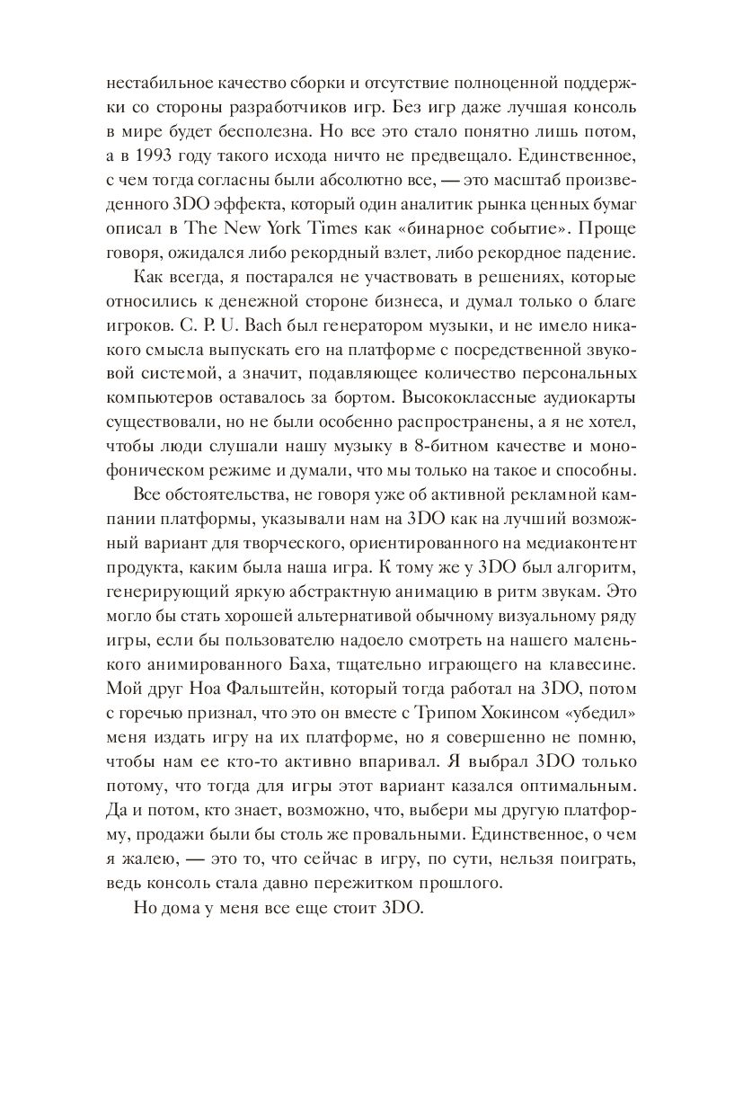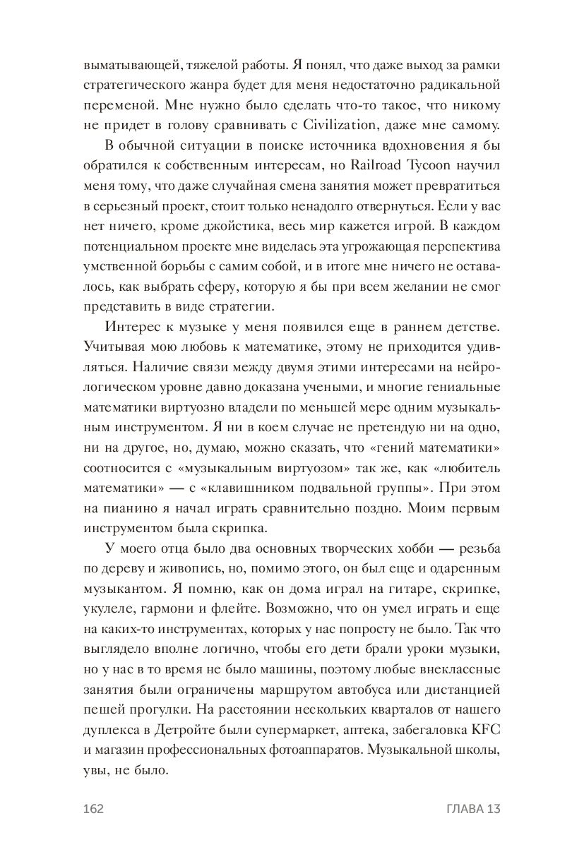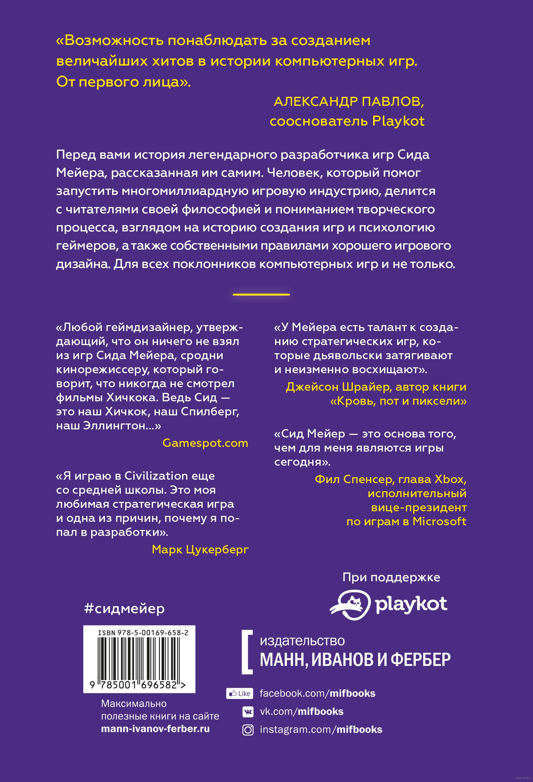 Перед вами история одержимого молодого компьютерного энтузиаста, который помог запустить многомиллиардную индустрию. Сформулировав свою философию ("видеоигра должна быть серией интересных решений"), Мейер делится взглядом на историю индустрии, психологию геймеров и увлекательное понимание творческого процесса, включая собственные правила хорошего игрового дизайна.