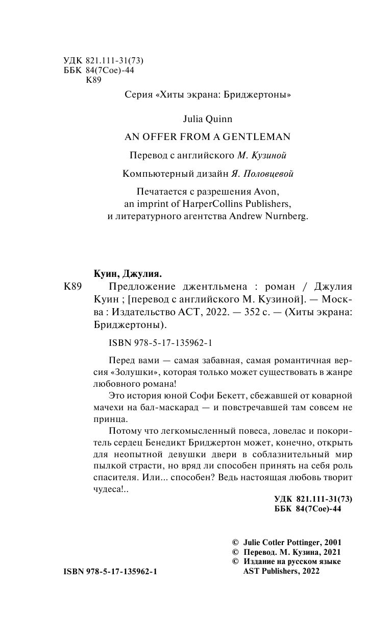 | Название в оригинале | An Offer From a Gentleman |