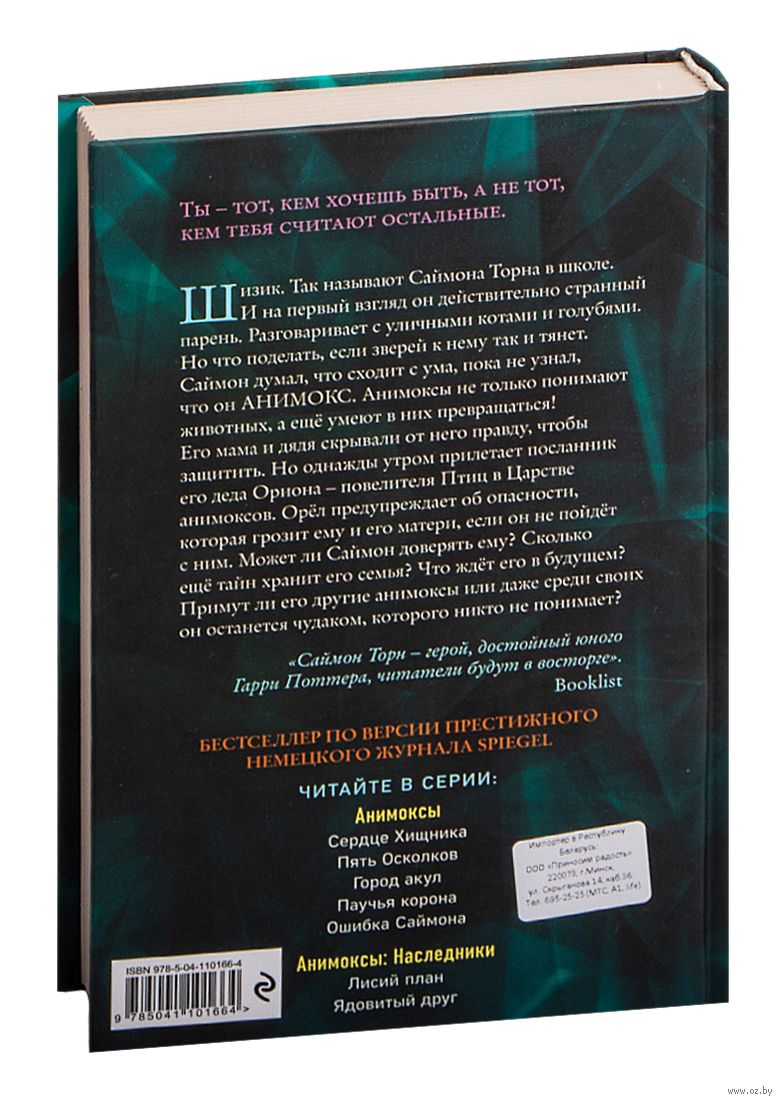 Саймон Торн с виду обычный школьник. Но обыкновенная внешность – это всего лишь маскировка, которая нужна, чтобы скрыть суть. Наполовину человек, наполовину... хищник – вот кто этот парень на самом деле. Среди людей такому, как он не всегда просто. Но однажды Саймон попадает в школу анимоксов, подростков, которые наполовину – птицы, рептилии, насекомые, подводные жители и звери. Может, хотя бы здесь он наконец обретёт себя и найдёт друзей? Только здесь не всё гладко – Царства постоянно конфликтуют и Саймон, сам того не подозревая, оказывается в самом центре опасных событий...