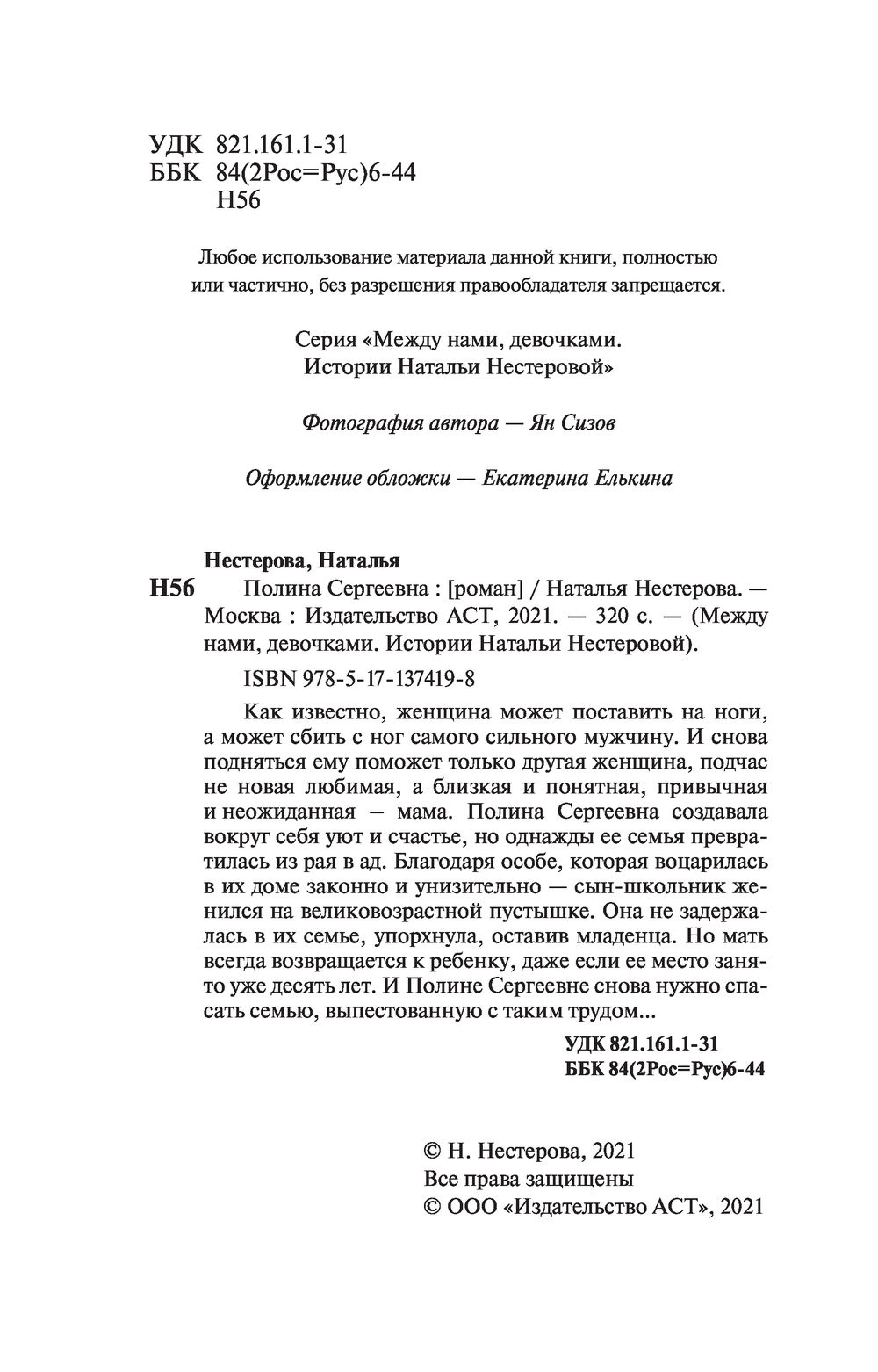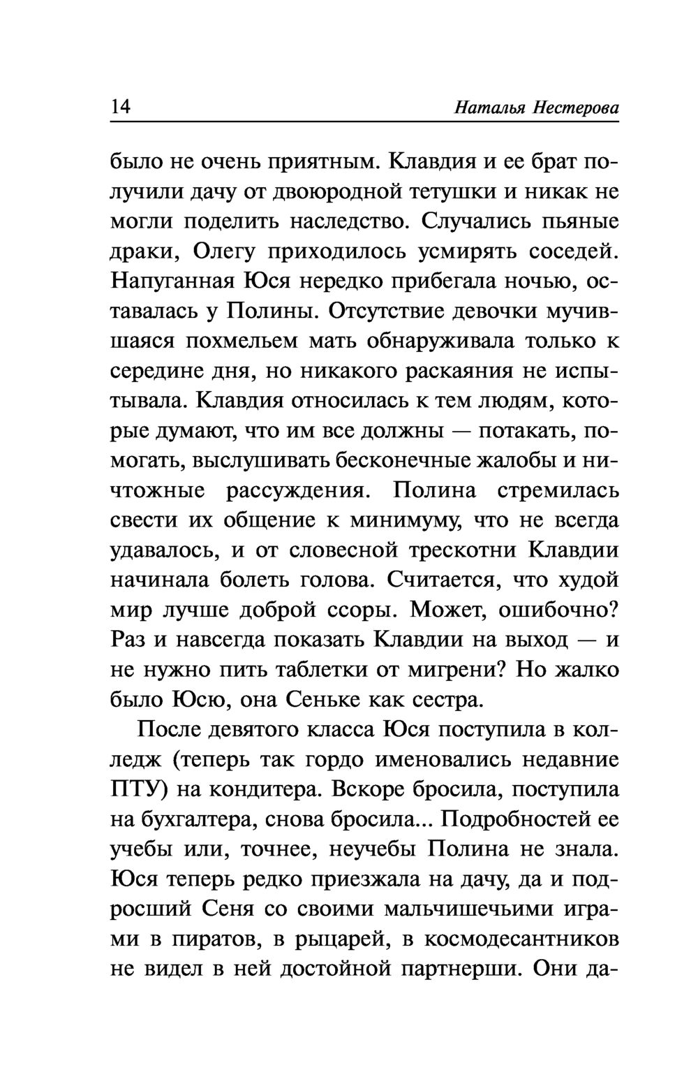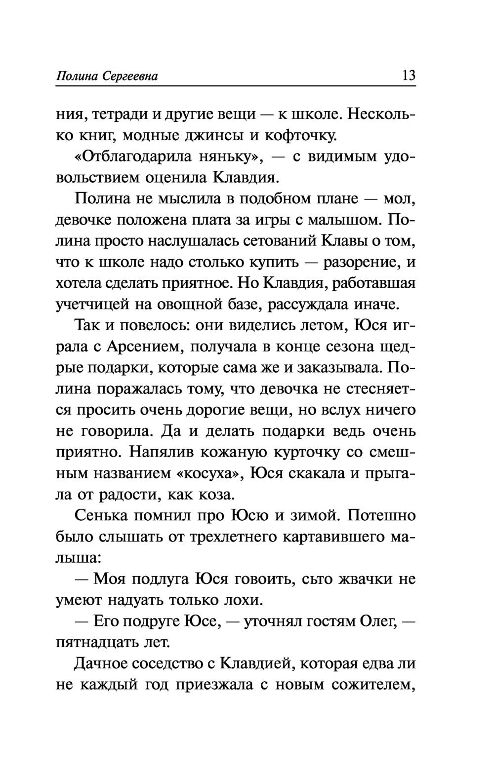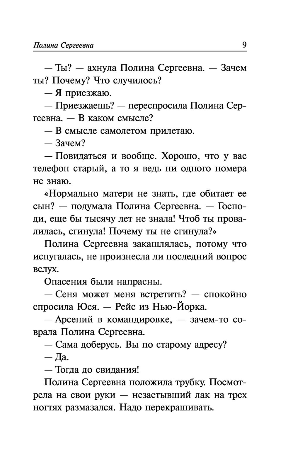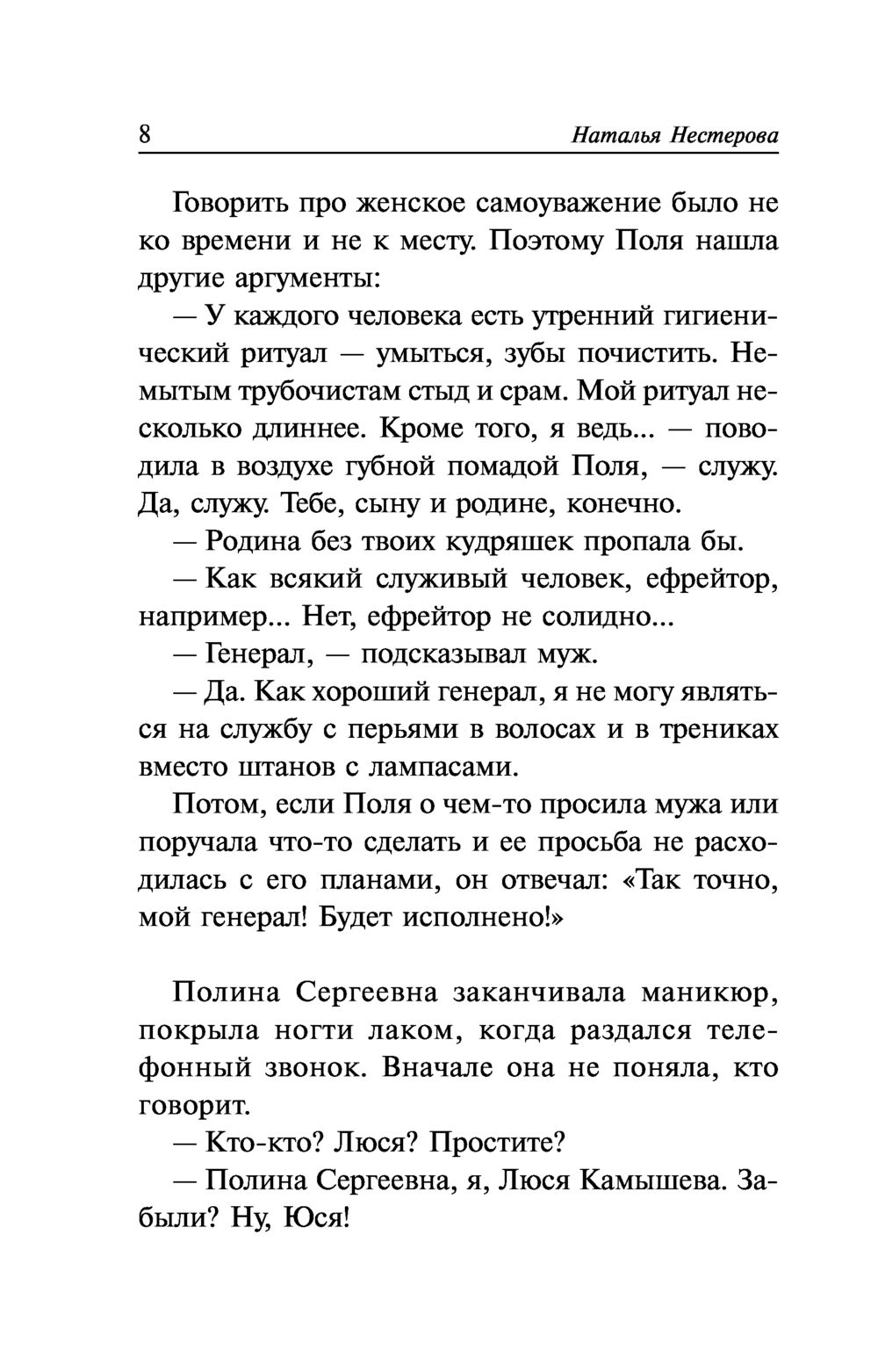 Как известно, женщина может поставить на ноги, а может сбить с ног самого сильного мужчину. И снова подняться ему поможет только другая женщина, подчас не новая любимая, а близкая и понятная, привычная и неожиданная – мама. Полина Сергеевна создавала вокруг себя уют и счастье, но однажды ее семья превратилась из рая в ад. Благодаря особе, которая воцарилась в их доме законно и унизительно – сын-школьник женился на великовозрастной пустышке. Она не задержалась в их семье, упорхнула, оставив младенца. Но мать всегда возвращается к ребенку, даже если ее место занято уже десять лет. И Полине Сергеевне снова нужно спасать семью, выпестованную с таким трудом...