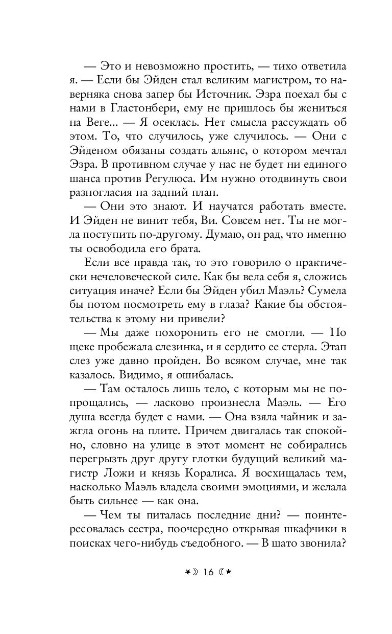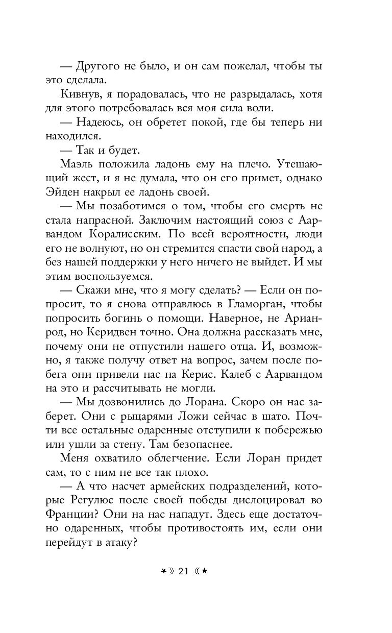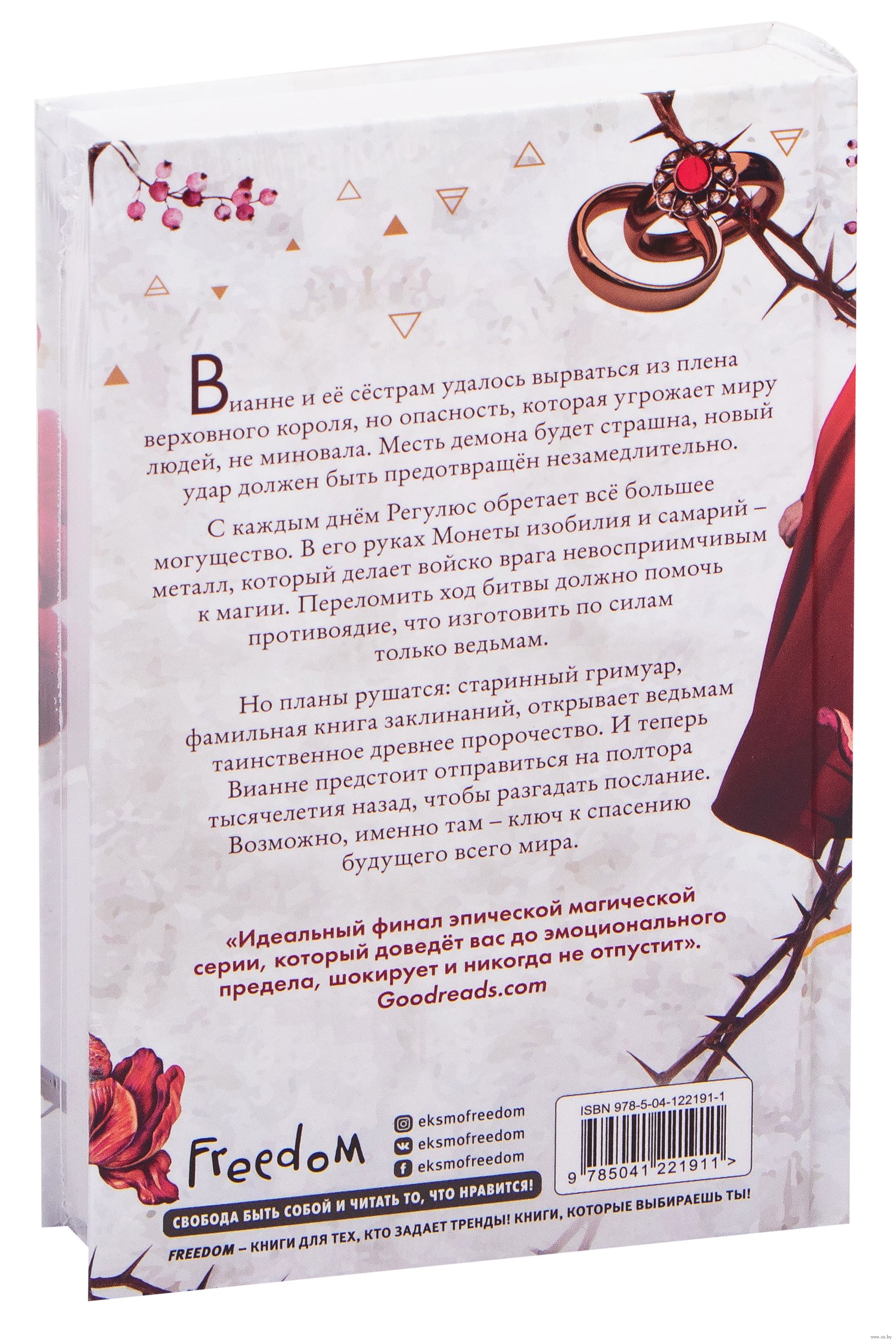 Вианне и ее сестрам удалось вырваться из плена верховного короля, но опасность, которая угрожает миру людей, не миновала. Месть демона будет страшна, новый удар должен быть предотвращен незамедлительно. С каждым днем Регулюс обретает все большее могущество. В его руках Монеты изобилия и самарий – металл, который делает войско врага невосприимчивым к магии. Переломить ход битвы должно помочь противоядие, что изготовить по силам только ведьмам. Но планы рушатся: старинный гримуар, фамильная книга заклинаний, открывает ведьмам таинственное древнее пророчество. И теперь Вианне предстоит отправиться на полтора тысячелетия назад, чтобы разгадать послание. Возможно, именно там – ключ к спасению будущего всего мира.