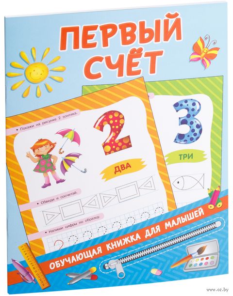 Красочная книжка "Первый счет" - интересные задания и яркие картинки, которые помогут ребёнку быстро выучить счёт до десяти и научиться писать цифры, развить навыки устного счёта, логическое и пространственное мышление. Малыш потренирует память и внимание, научится группировать предметы, обобщать и анализировать.