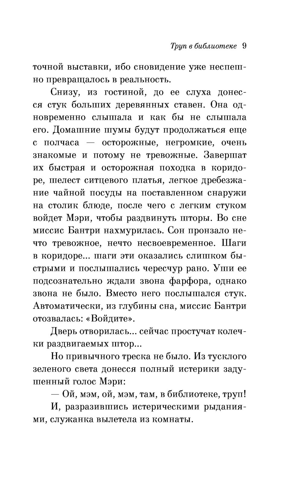 Все было прекрасно, когда Долли Бантри проснулась у себя дома в тихой деревушке Сент-Мэри-Мид. Прекрасно – до тех пор, пока в комнате, где располагалась семейная библиотека, не было обнаружено тело молодой девушки. По словам врача, она была задушена вчерашним вечером до полуночи. При этом никто в доме не знал эту привлекательную блондинку.