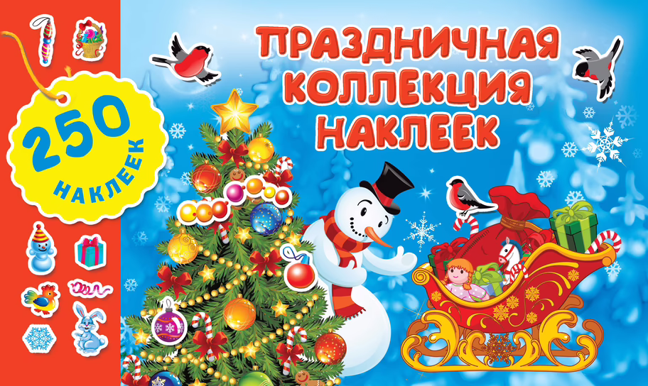 "Праздничная коллекция наклеек. 250 наклеек" – это отличный подарок малышам к Новому году. Они с радостью украсят яркими стикерами новогодние открытки, рисунки и поделки.