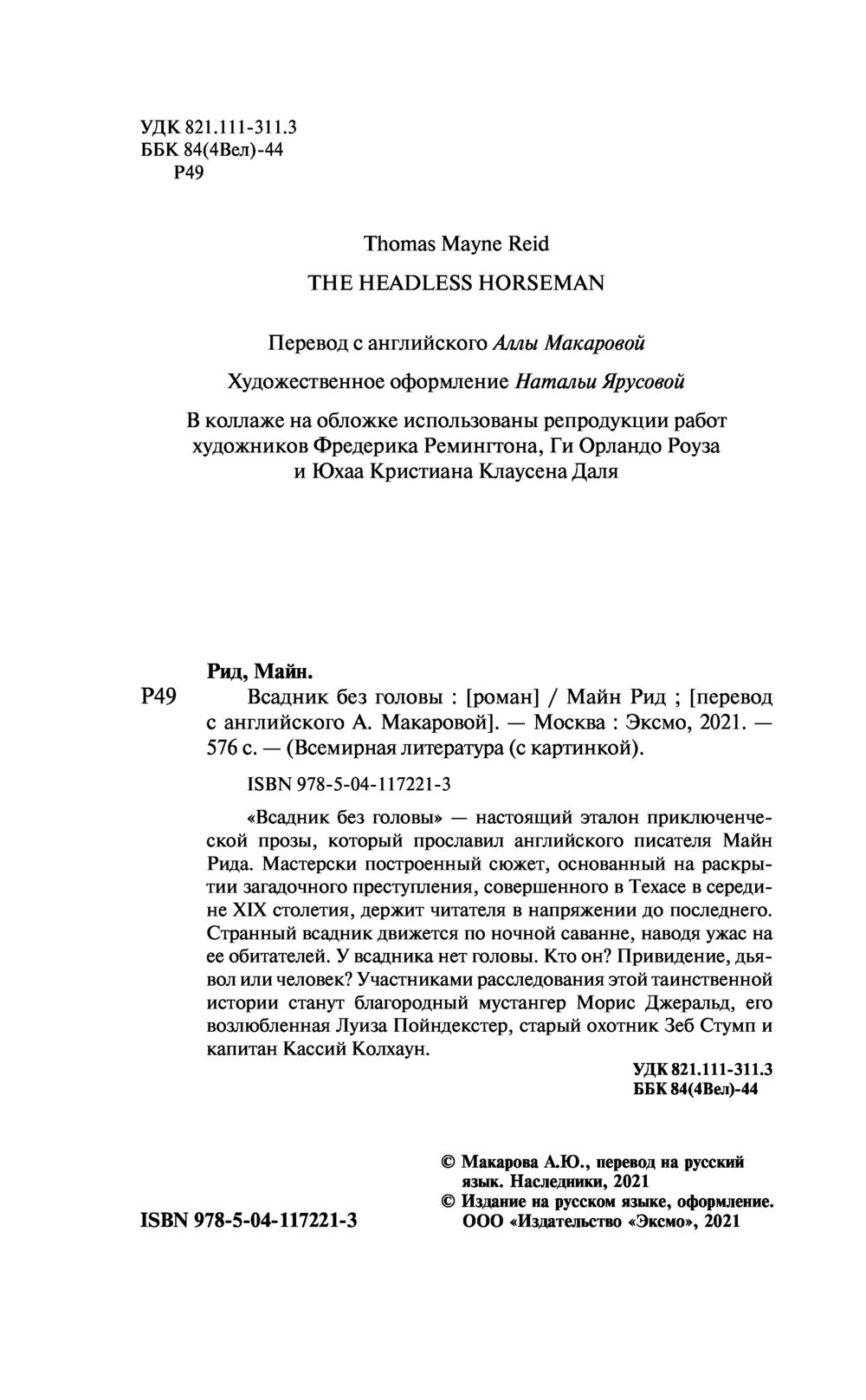 "Всадник без головы" – настоящий эталон приключенческой прозы, который прославил английского писателя Майн Рида. Мастерски построенный сюжет, основанный на раскрытии загадочного преступления, совершенного в Техасе в середине XIX столетия, держит читателя в напряжении до последнего.