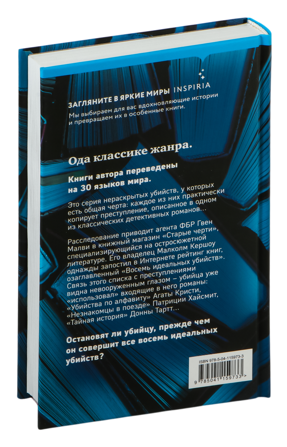 Несколько лет назад бостонский книготорговец Малколм Кершоу, специалист по остросюжетной литературе, составил для своего интернет-блога список детективов. В каждом из них было описано идеальное – нераскрываемое – убийство. Список представлял классику жанра – "Убийства по алфавиту" Агаты Кристи, "Незнакомцы в поезде" Патриции Хайсмит, "Утопленница" Джона Макдональда, "Тайная история" Донны Тартт, "Двойная ловушка" Джеймса Кейна... Всего романов было восемь, и Малколм назвал свой список "Восемь идеальных убийств". А теперь в его магазин пришла с визитом агент ФБР. Кто-то начал серию странных, практически необъяснимых убийств, и она уверена, что преступник действует строго в соответствии со списком Малколма, стремясь воплотить в жизнь сюжет каждого из романов. Более того, в ФБР полагают, что убийца хорошо знает Кершоу – и старается подставить его. Как ни крути, а автор списка сейчас стал главным подозреваемым. Более того, до совершения всех восьми "идеальных убийств" пока еще далеко... Кто станет следующей жертвой?