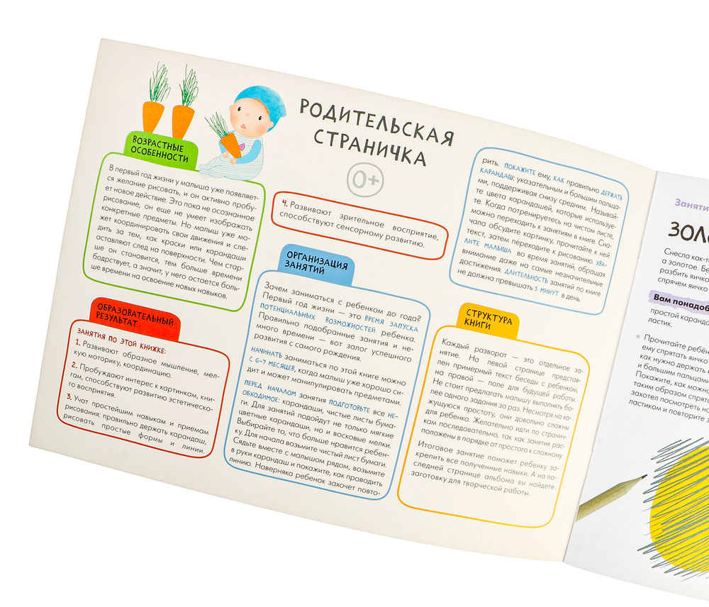 Книга "Рисуем карандашами 0+" из серии "Школа Семи Гномов. Мастерская" – это красочный альбом для занятий рисованием с ребенком от рождения до года. Занятия на близкие и понятные ребенку темы расположены по мере усложнения: поступательно переходя от освоения простых навыков к более сложным заданиям, ребенок научится создавать рисунки с помощью карандашей или восковых мелков.