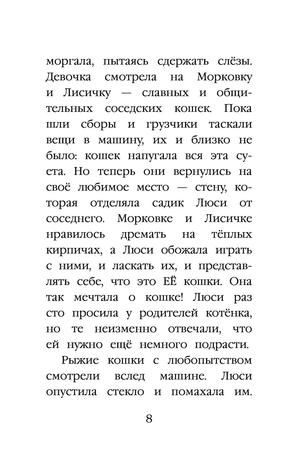 Люси всегда мечтала о котенке и, наконец, ее мечта сбылась – родители подарили ей Фиалку. Только вот появился котенок после того, как семья переехала в другой район и Люси пришлось пойти в новую школу. Девочка подумала – папа и мама хотят, чтобы она забыла старый дом и прежних друзей и не очень расстраивалась из-за переезда. Люси не хотела забывать, поэтому решила притвориться, будто никакой котенок ей не нужен и не играть с Фиалкой на глазах у семьи.