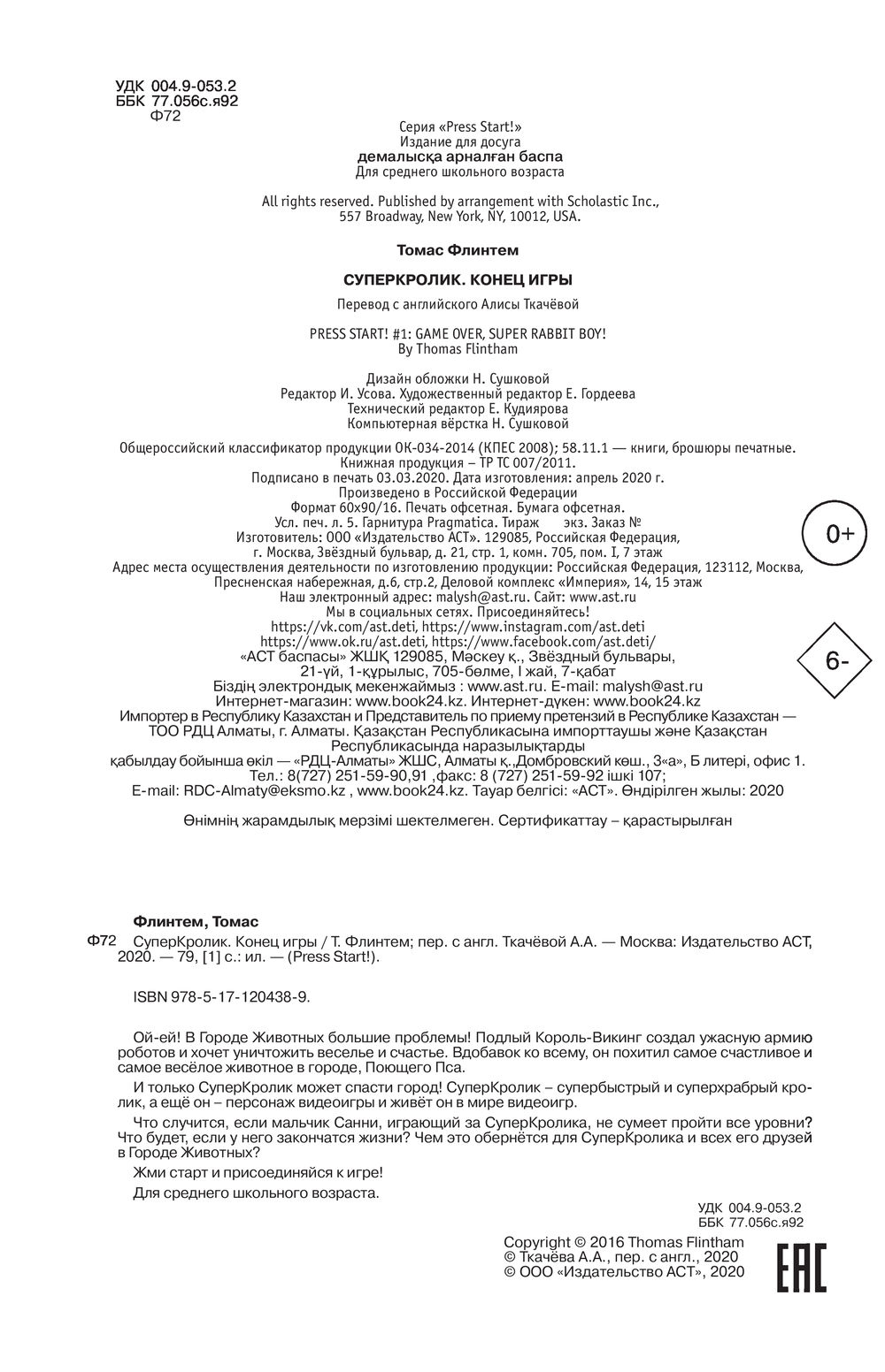 | Изготовитель | Творческое кооперативное объединение «АСТ». 129085, РФ, г. Москва, б-р Звездный, 21, стр. 1 |