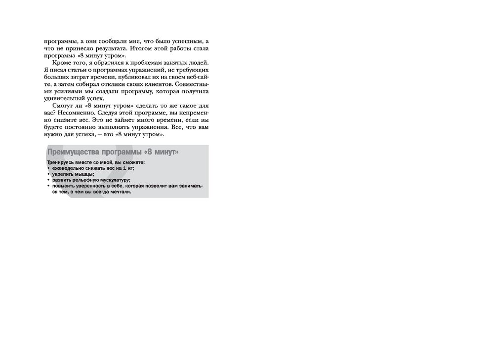 | Название в оригинале | 8 Minutes in the Morning: A Simple Way to Start Your Day That Burns Fat and Sheds the Pounds |