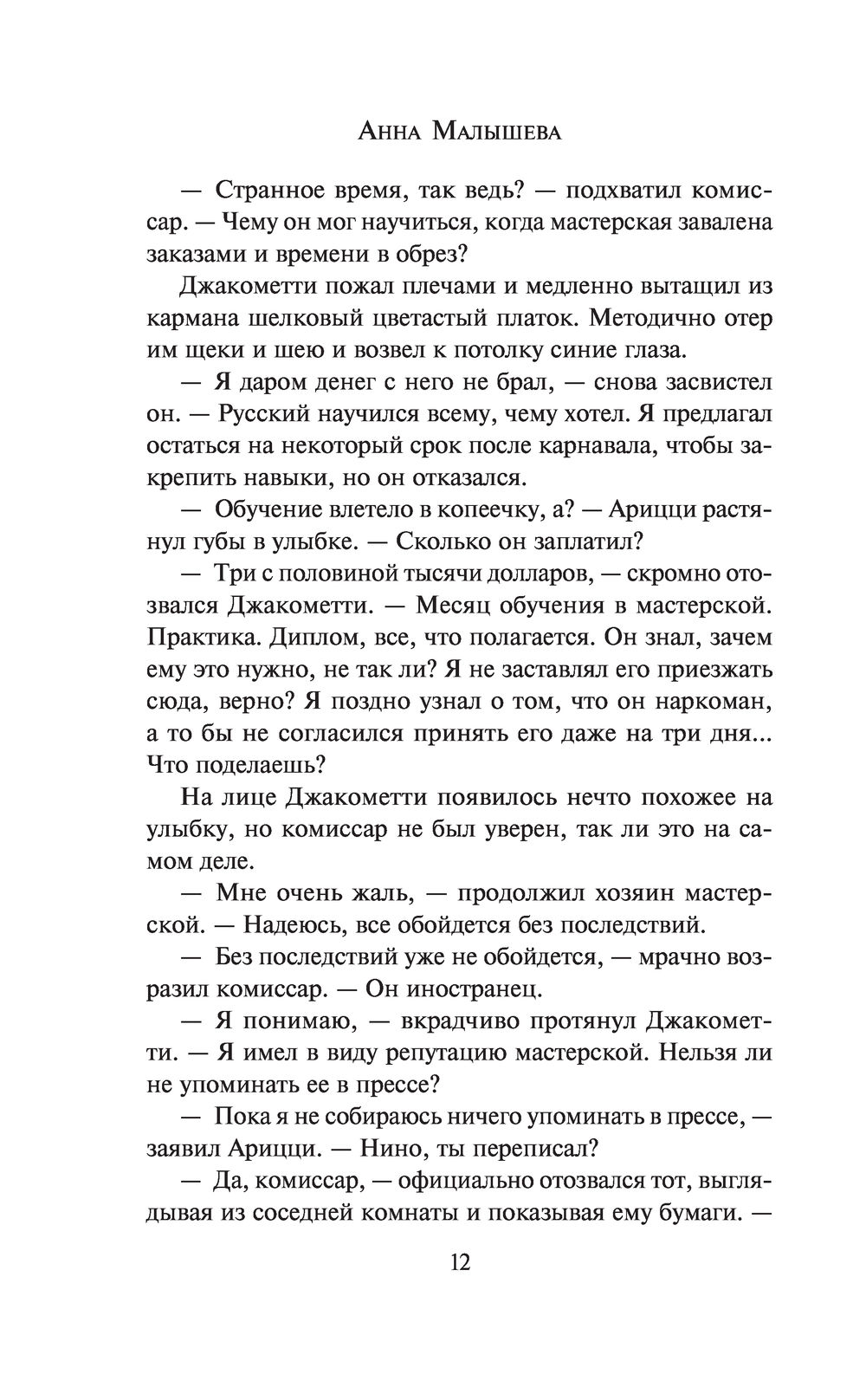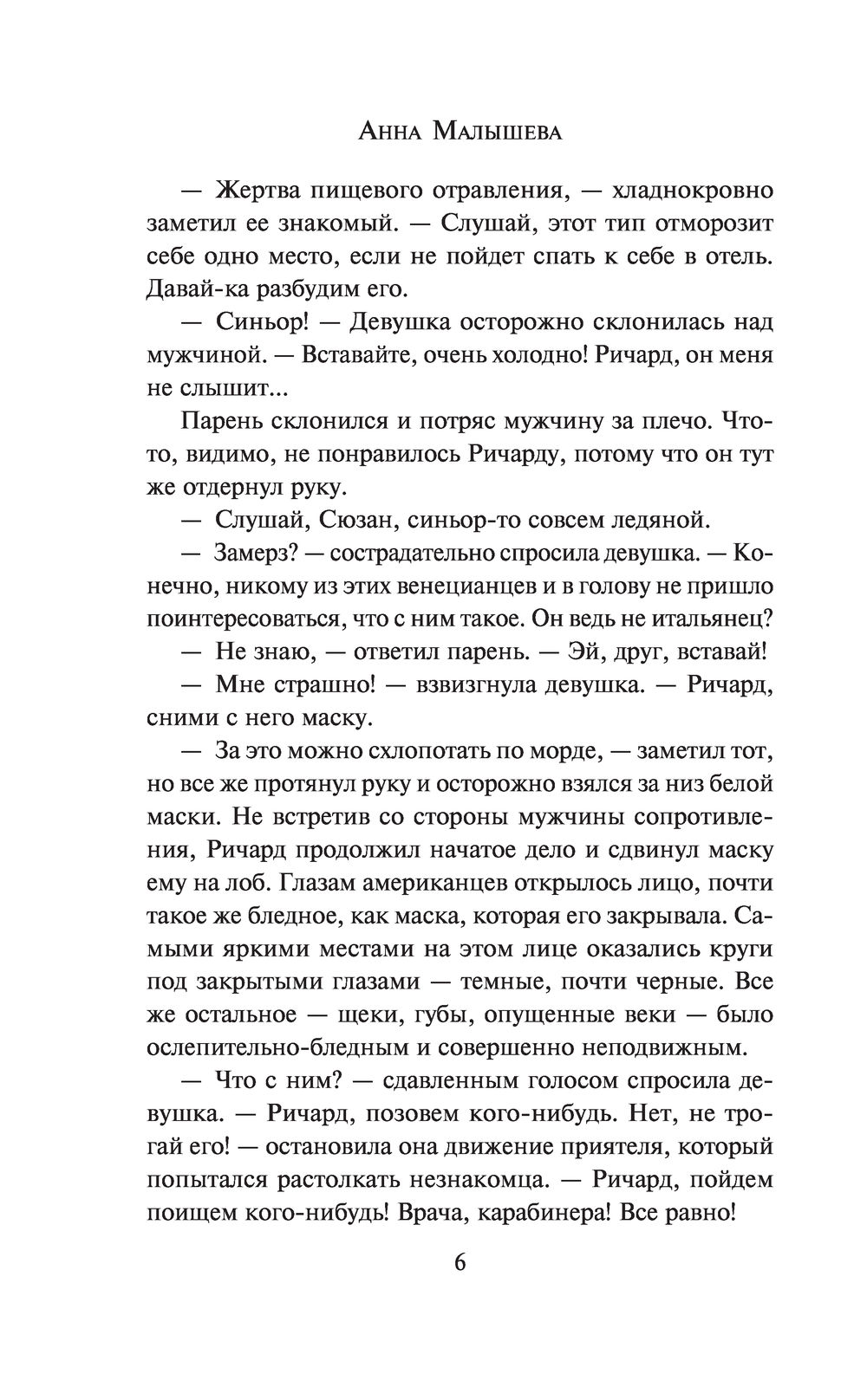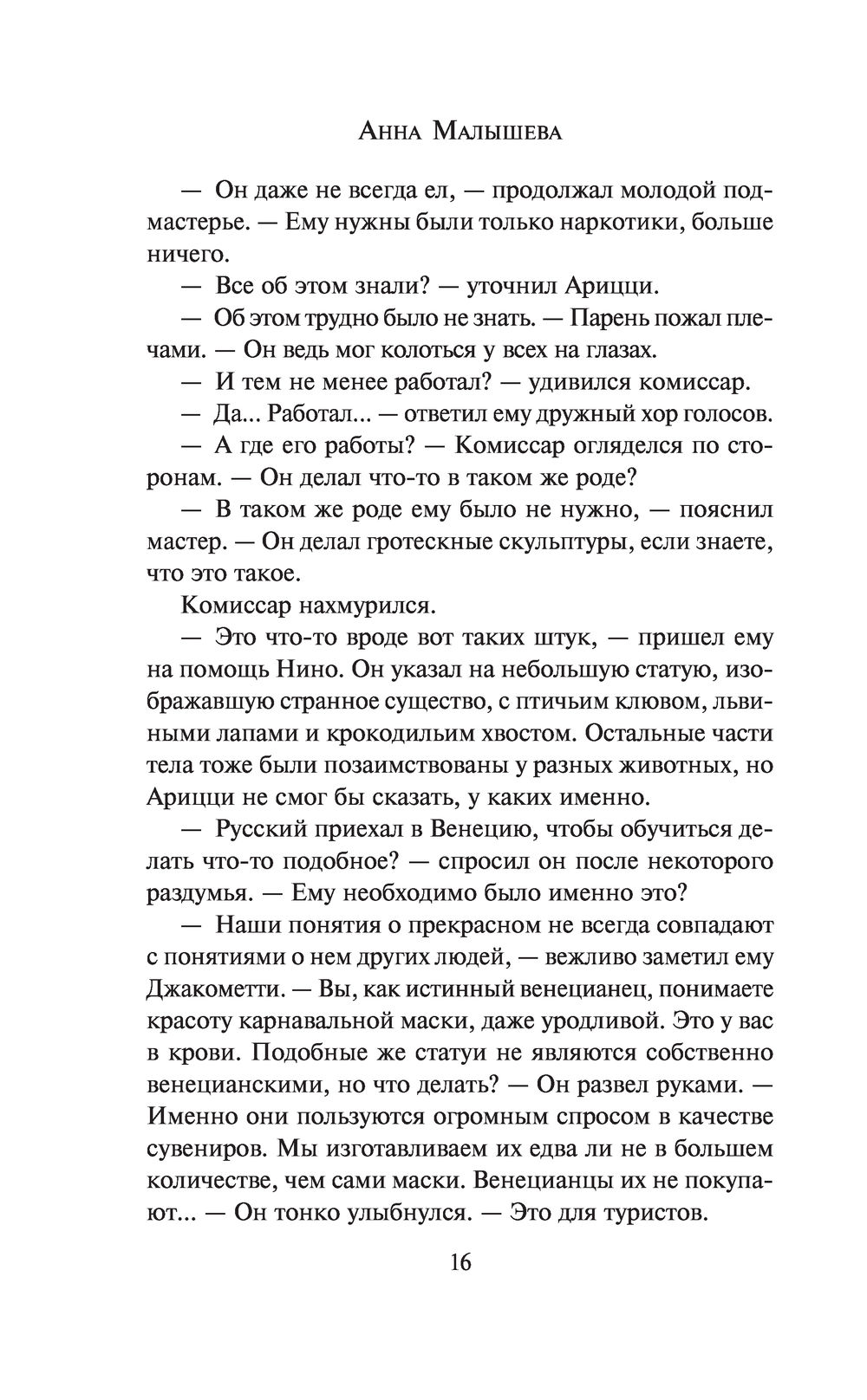 Ей дорого пришлось заплатить за право любить. Сперва – утратить иллюзии, затем – душевный покой, ну а дальше... Даша, медсестра наркологического центра, пытается выяснить, отчего погиб в Венеции, во время карнавала, ее возлюбленный – талантливый скульптор. Она ведет собственное расследование и заходит слишком далеко... На ее пути появляются люди, с которыми трудно спорить.