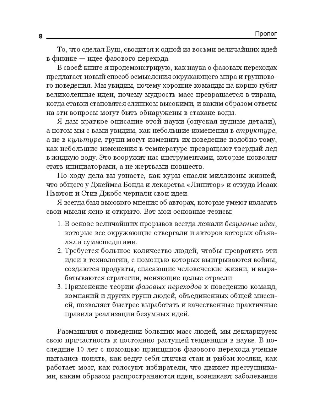 В своей книге физик и предприниматель Сафи Бэколл описывает, как меняется отношение команд, компаний и других сообществ к новым идеям – от безоговорочного одобрения до столь же безоговорочного отрицания. Книга помогает выявить и использовать все нюансы, позволяющие управлять этими настроениями.